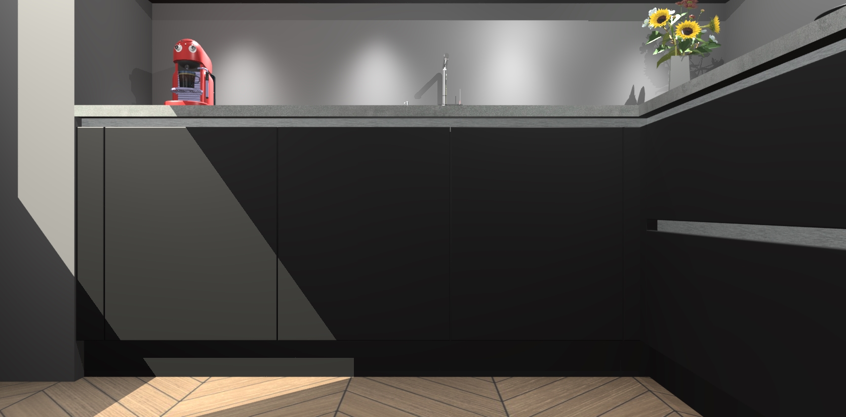 Inclusief plinten, stelpoten en werkblad