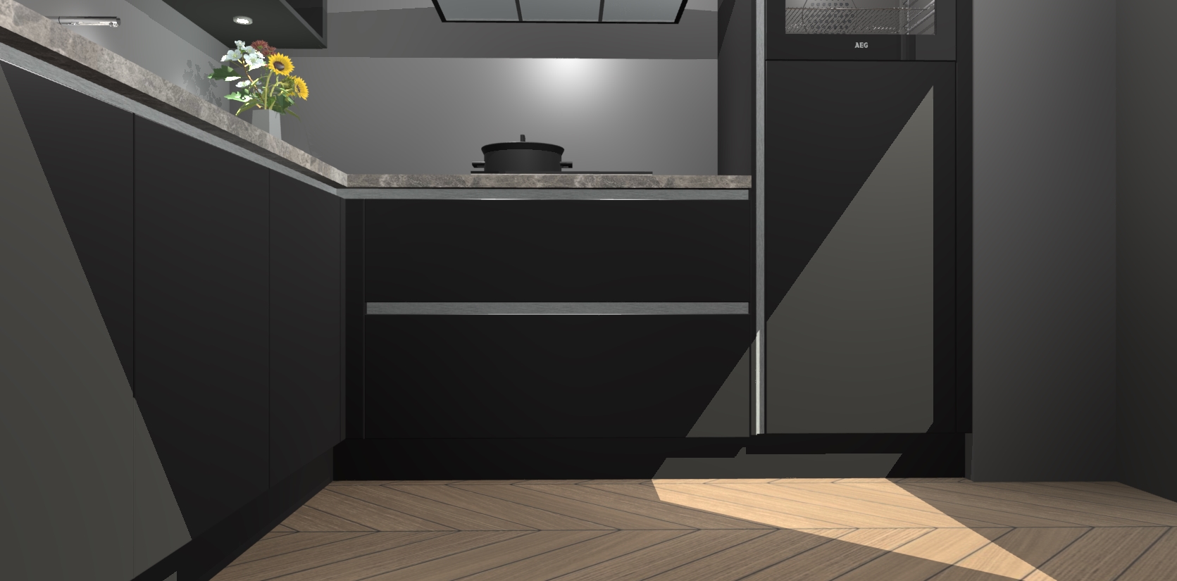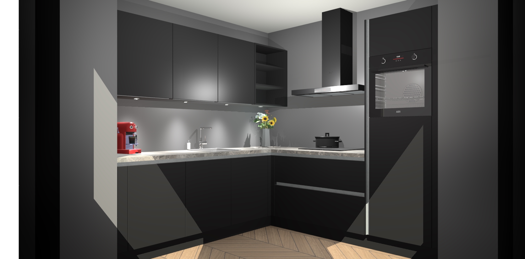 Met een modern, tijdloos design en ruime opslagruimte, zult u zich in no-time thuis voelen in uw nieuwe keuken. Uw leven wordt eenvoudiger met de soft-close deuren die voor het ultieme stille comfort zorgen - geen geluid dat u stoort terwijl u kookt. Ook is de keuken voorzien van 5 ingebouwde apparaten: een oven, inductie kookplaat, afzuigkap, vaatwasser en koelkast. Deze kunnen gemakkelijk na bestelling worden bijgewerkt naar AEG - waardoor uw luxe ervaring compleet is.