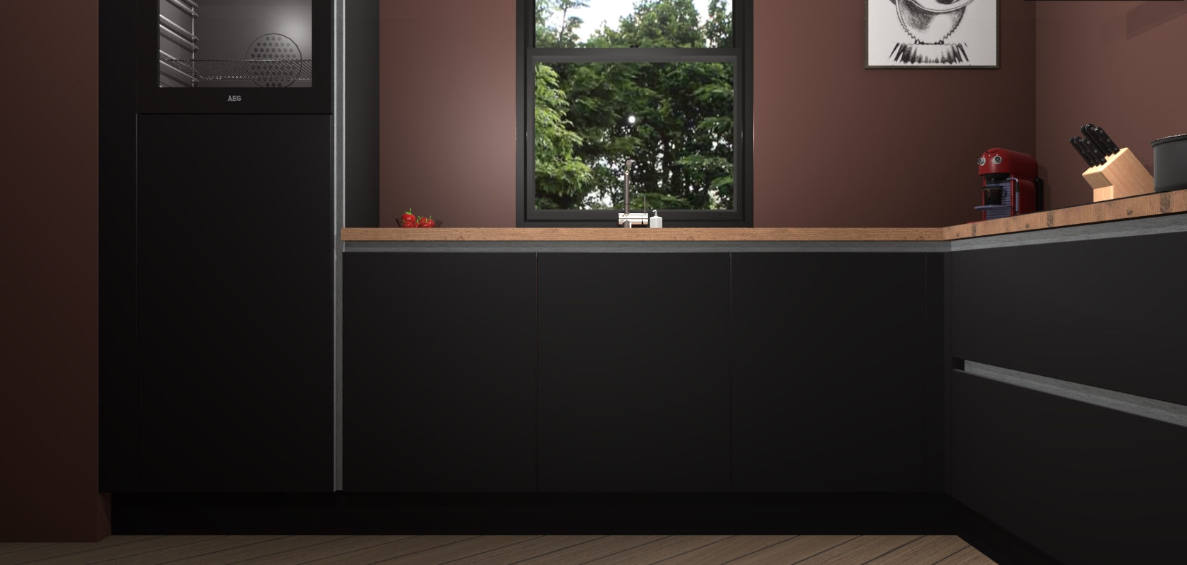 Welkom bij de zwarte greeploze keuken Lublin. Deze prachtige keuken zal de komende jaren het middelpunt van de belangstelling in uw huis zijn. Uitgerust met vijf inbouwapparaten komt u nooit kookgereedschap tekort. Bovendien geeft de warme houtlook elke ruimte een uitnodigende en tijdloze uitstraling.
