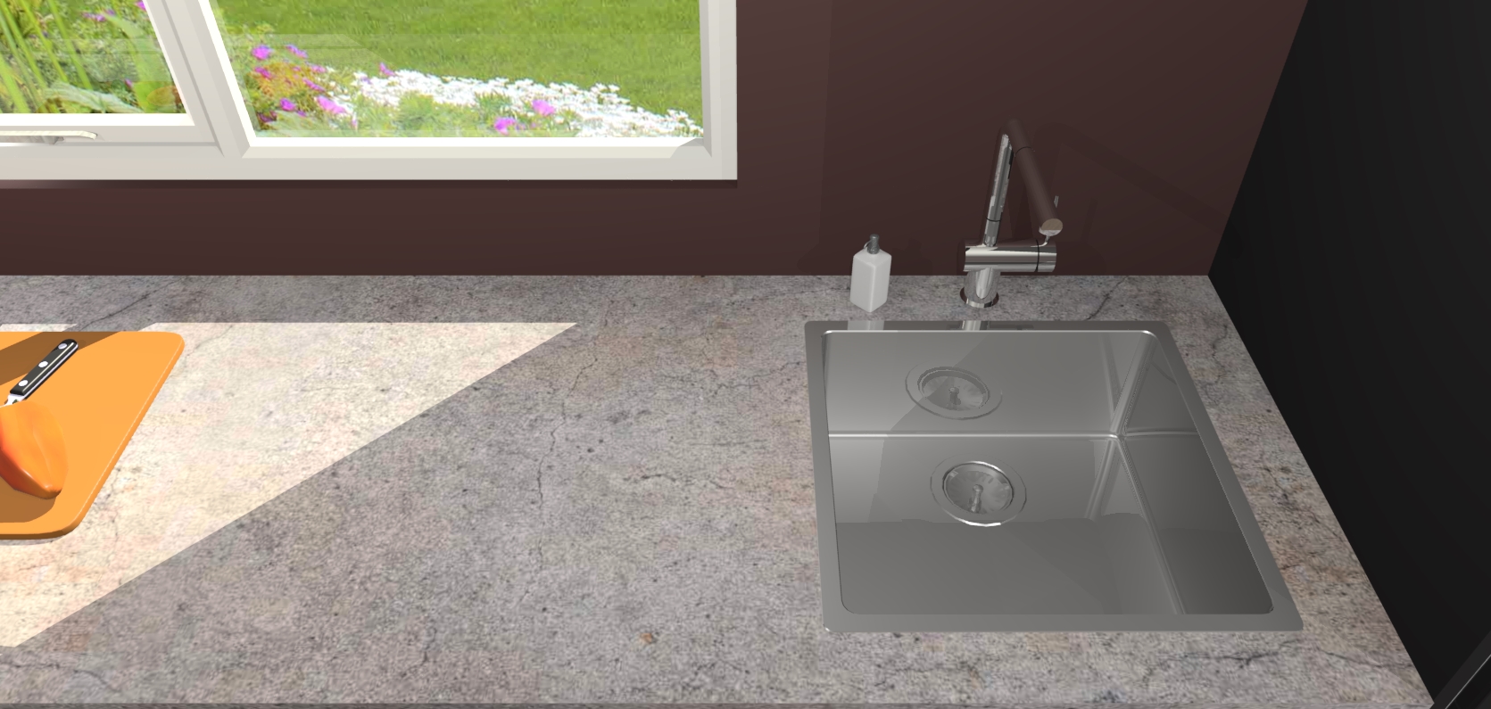 - De spoelbak is nog niet in gevreesd. Dit dient tijdens het werk gedaan te worden