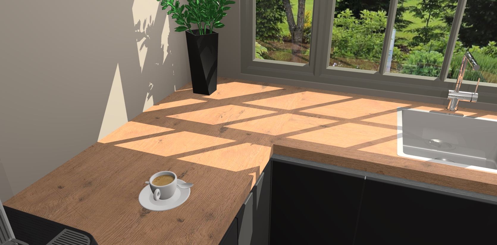 - Bij een hoekwerkblad zijn de hoeken in gevreesd en op maat gemaakt