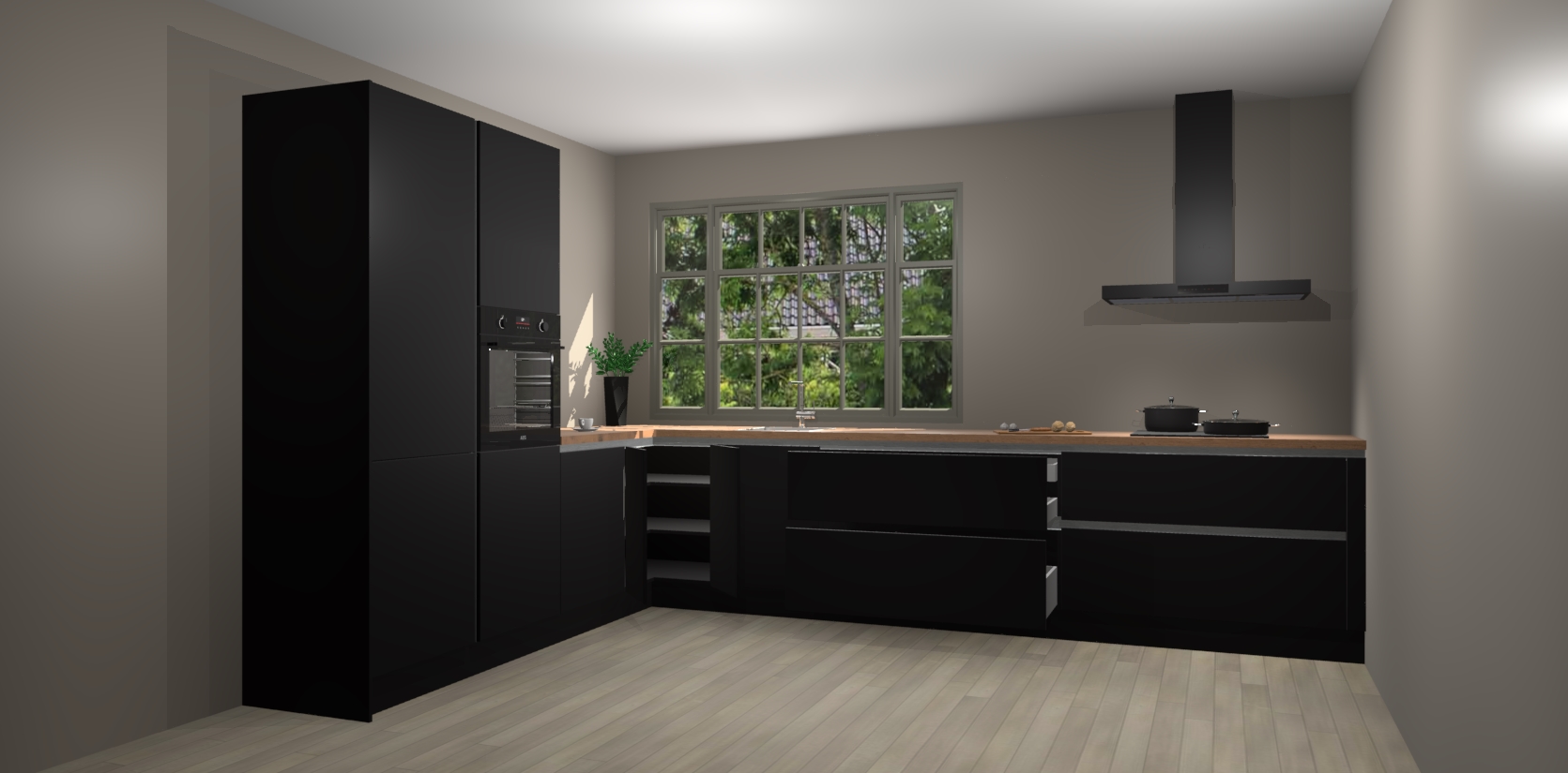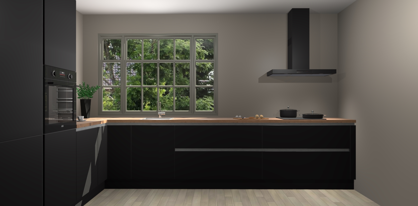 Kom dichtbij de perfecte keuken van uw dromen met de Zwarte greeploze keuken Malaga. Met een prachtige houtlook en eigentijds ontwerp, straalt deze keuken warmte en sfeer uit. Of u nu liefhebber bent van traditionele of moderne stijlen, er is genoeg ruimte om aan al uw behoeften te voldoen.