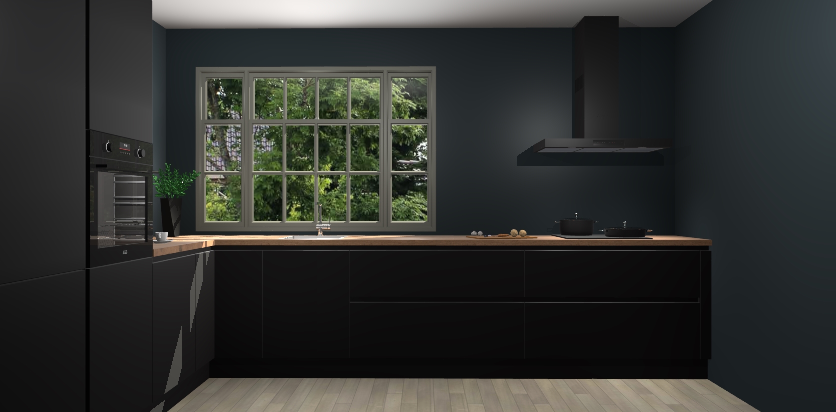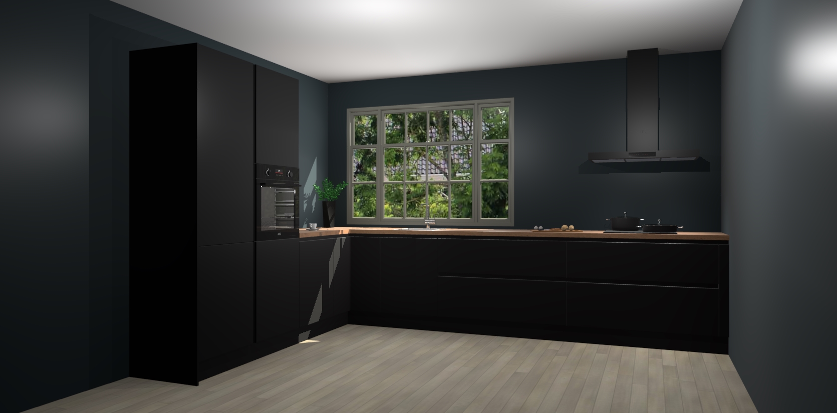Kom dichtbij de perfecte keuken van uw dromen met de Zwarte greeploze keuken Malaga. Met een prachtige houtlook en eigentijds ontwerp, straalt deze keuken warmte en sfeer uit. Of u nu liefhebber bent van traditionele of moderne stijlen, er is genoeg ruimte om aan al uw behoeften te voldoen.