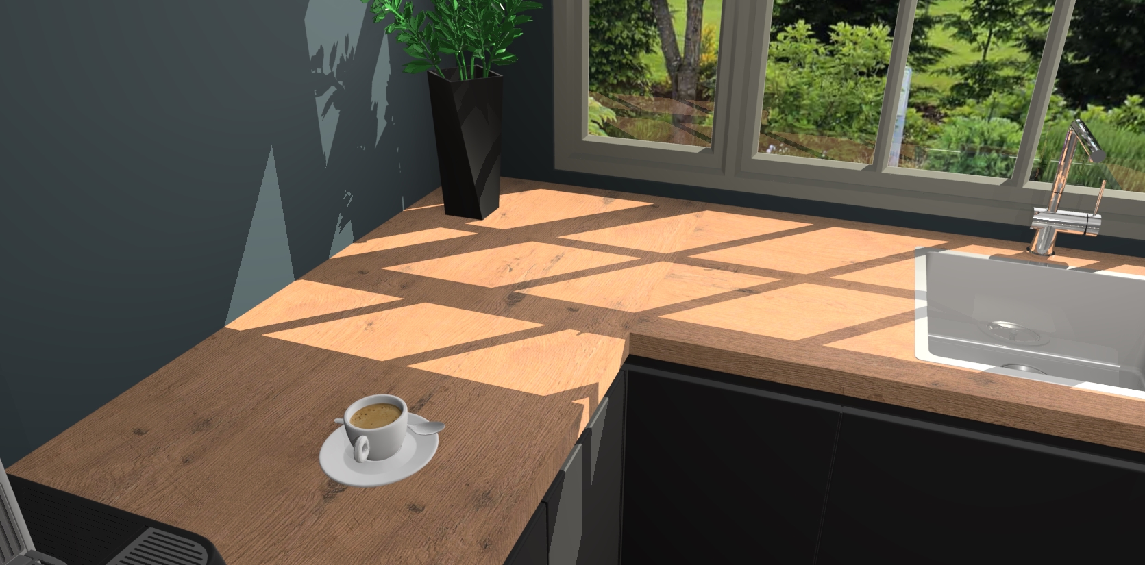 - Bij een hoekwerkblad zijn de hoeken in gevreesd en op maat gemaakt