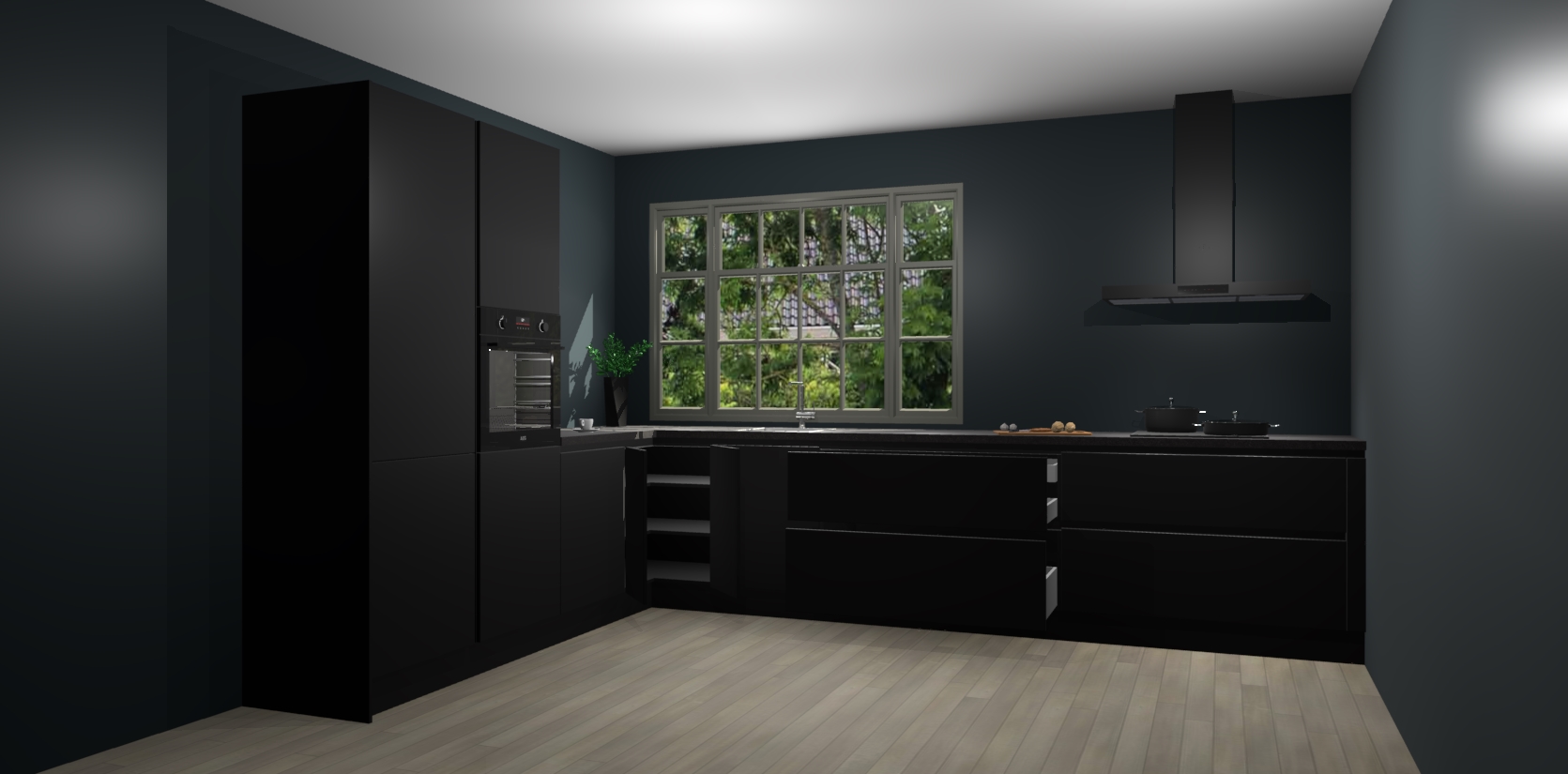 Kom dichtbij de perfecte keuken van uw dromen met de Zwarte greeploze keuken Malaga. Met een prachtige houtlook en eigentijds ontwerp, straalt deze keuken warmte en sfeer uit. Of u nu liefhebber bent van traditionele of moderne stijlen, er is genoeg ruimte om aan al uw behoeften te voldoen.