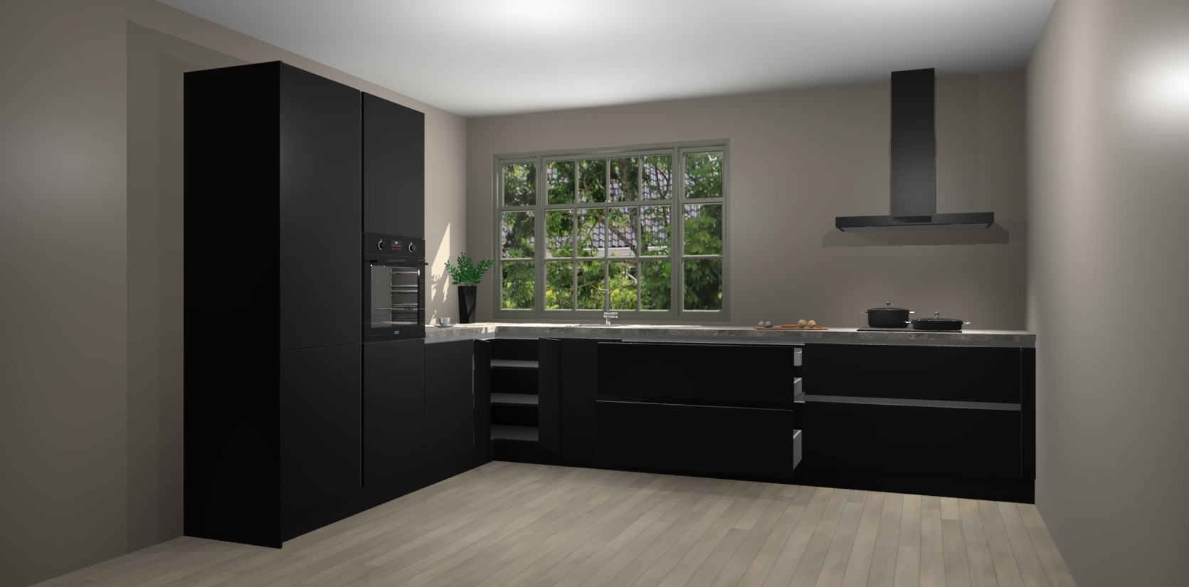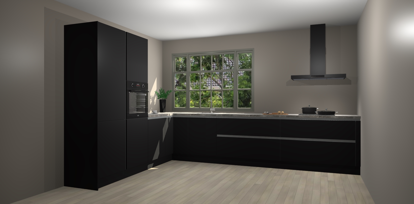 Kom dichtbij de perfecte keuken van uw dromen met de Zwarte greeploze keuken Malaga. Met een prachtige houtlook en eigentijds ontwerp, straalt deze keuken warmte en sfeer uit. Of u nu liefhebber bent van traditionele of moderne stijlen, er is genoeg ruimte om aan al uw behoeften te voldoen.