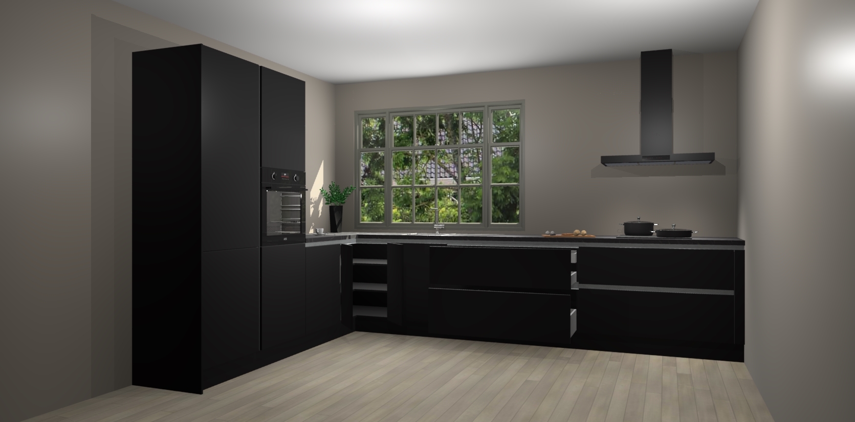 Kom dichtbij de perfecte keuken van uw dromen met de Zwarte greeploze keuken Malaga. Met een prachtige houtlook en eigentijds ontwerp, straalt deze keuken warmte en sfeer uit. Of u nu liefhebber bent van traditionele of moderne stijlen, er is genoeg ruimte om aan al uw behoeften te voldoen.