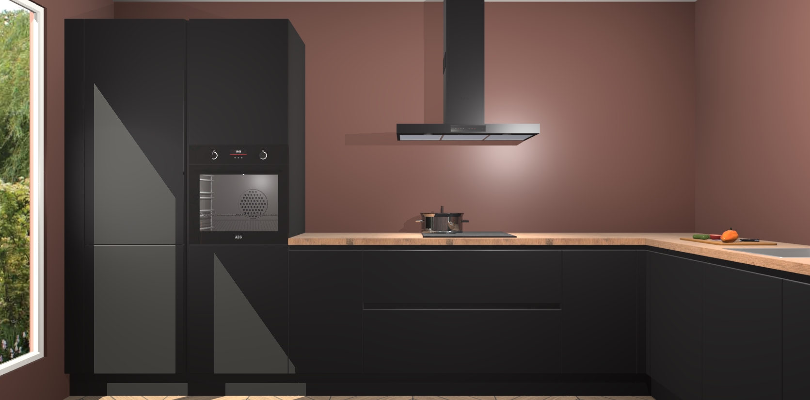 Met een modern, tijdloos design en ruime opslagruimte, zult u zich in no-time thuis voelen in uw nieuwe keuken. Uw leven wordt eenvoudiger met de soft-close deuren die voor het ultieme stille comfort zorgen - geen geluid dat u stoort terwijl u kookt. Ook is de keuken voorzien van 5 ingebouwde apparaten: een oven, inductie kookplaat, afzuigkap, vaatwasser en koelkast. Deze kunnen gemakkelijk na bestelling worden bijgewerkt naar AEG - waardoor uw luxe ervaring compleet is.