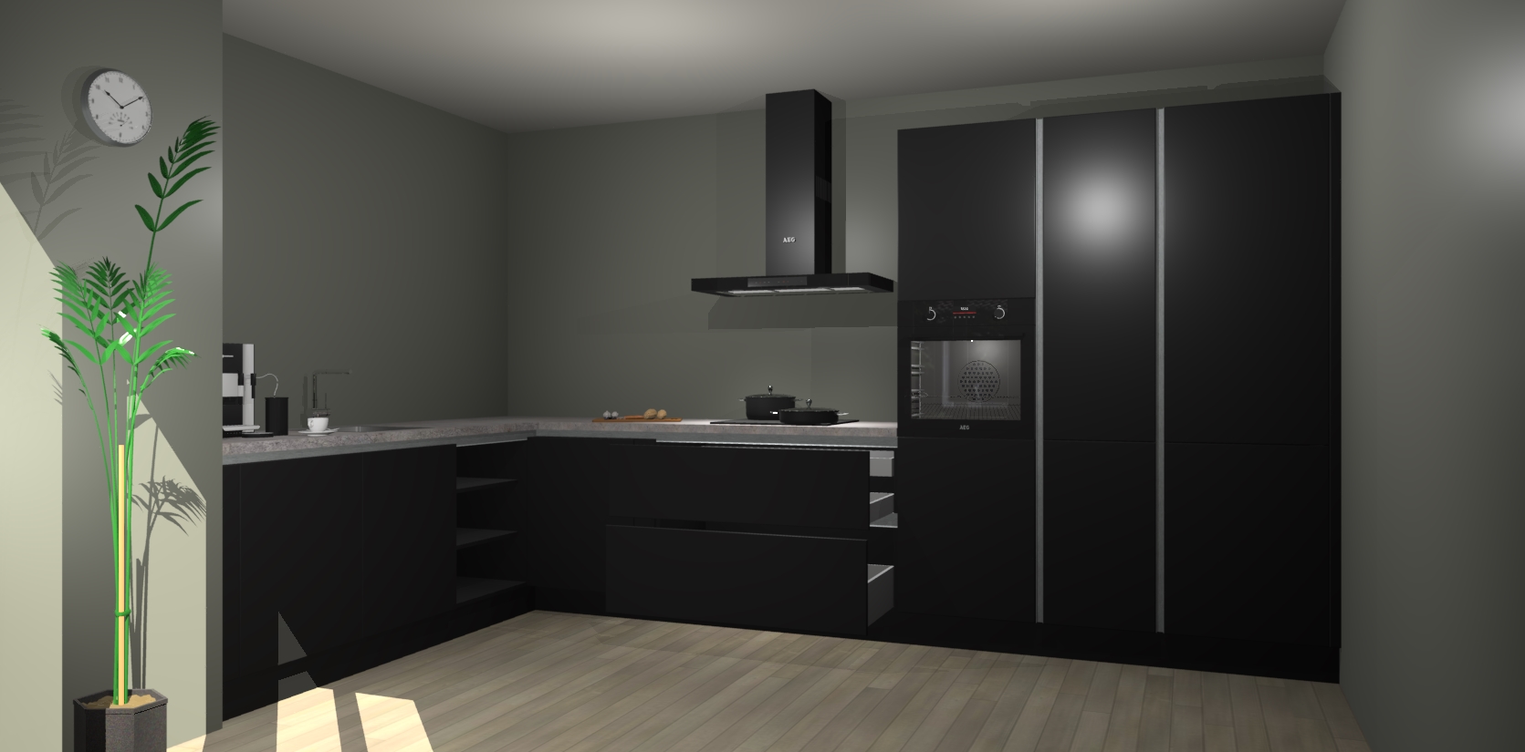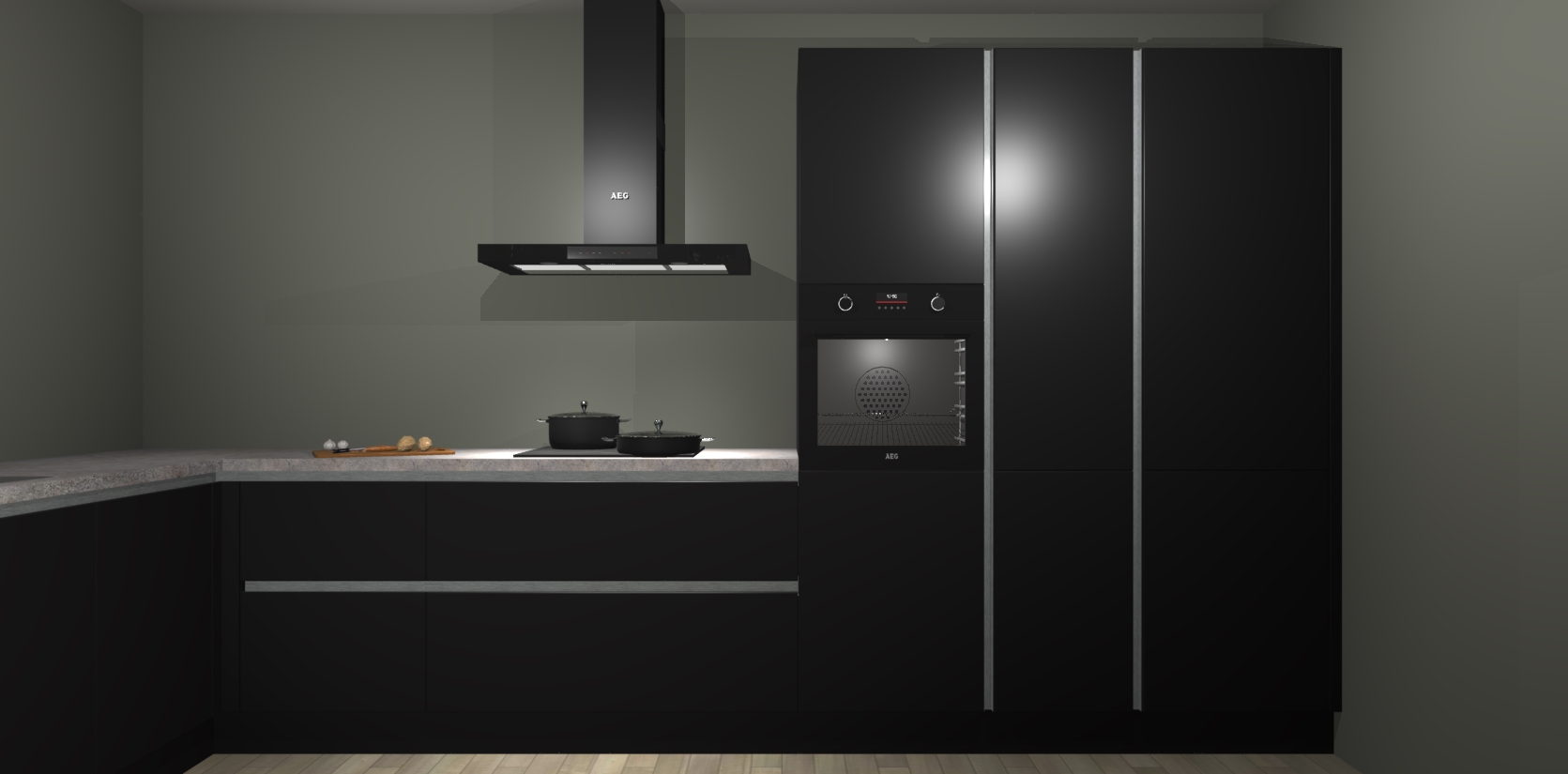 Welkom bij de zwarte greeploze keuken Nuuk. Deze prachtige keuken zal de komende jaren het middelpunt van de belangstelling in uw huis zijn. Uitgerust met vijf inbouwapparaten komt u nooit kookgereedschap tekort.