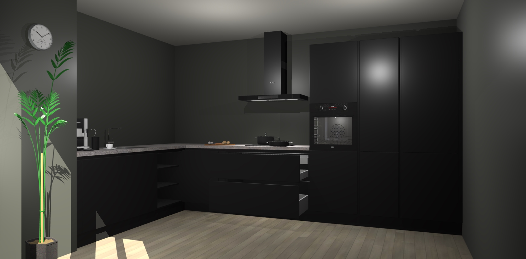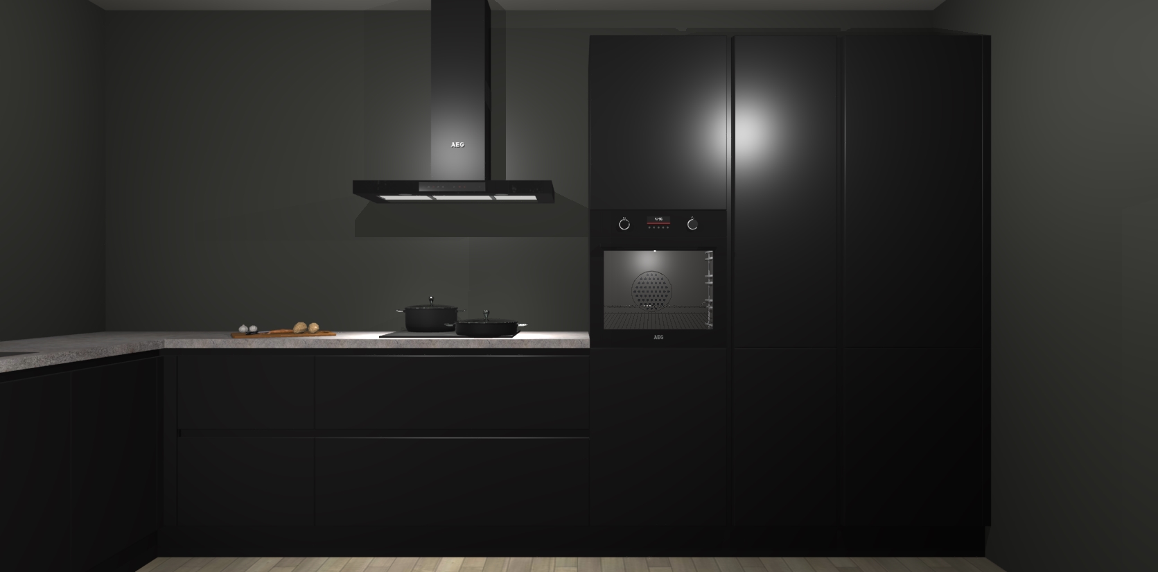 Welkom bij de zwarte greeploze keuken Nuuk. Deze prachtige keuken zal de komende jaren het middelpunt van de belangstelling in uw huis zijn. Uitgerust met vijf inbouwapparaten komt u nooit kookgereedschap tekort.