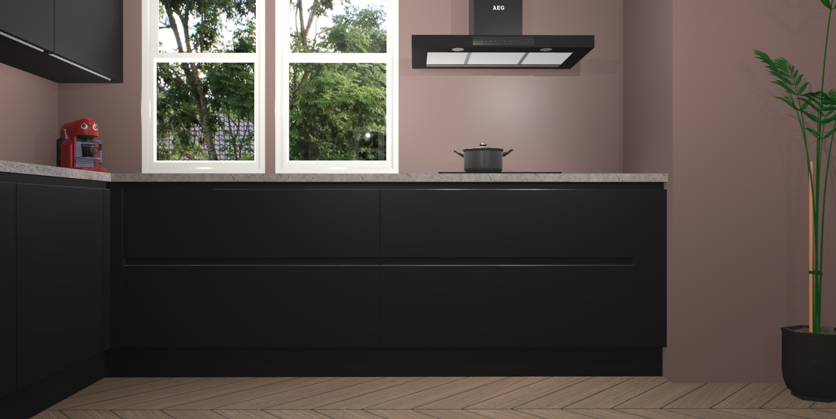Inclusief plinten, stelpoten en werkblad