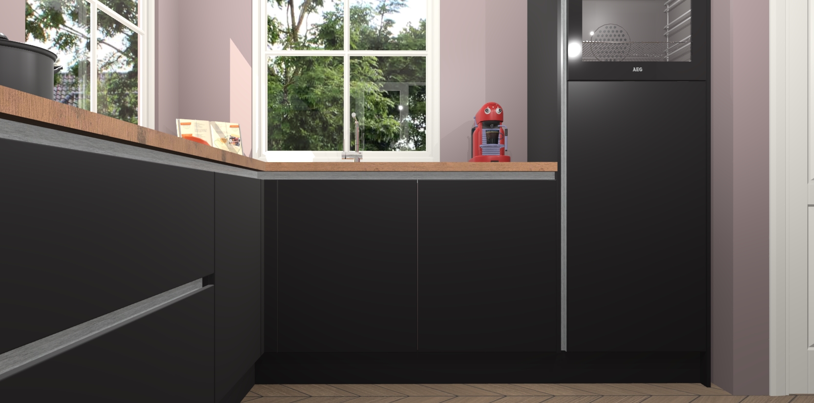 De Zwarte greeploze keuken Pai bevat vijf essentiële inbouwapparaten - een oven, inductiekookplaat, afzuigkap, vaatwasser en koelkast - zodat u er na levering meteen in kunt. Voor de slimme kopers die weten dat apparaten vaak het verschil kunnen maken tussen functioneel en luxueus, bieden we eenvoudige upgradeopties naar AEG, van oven naar combimagnetron na bestelling of naar een kookplaat met geïntrigeerde afzuiging. En met onze vaste lage prijs en snelle levering binnen zeven weken vanaf de orderbevestiging hoeft u zich geen zorgen te maken over verborgen kosten of lange levertijden die uw droomkeuken kunnen vertragen.