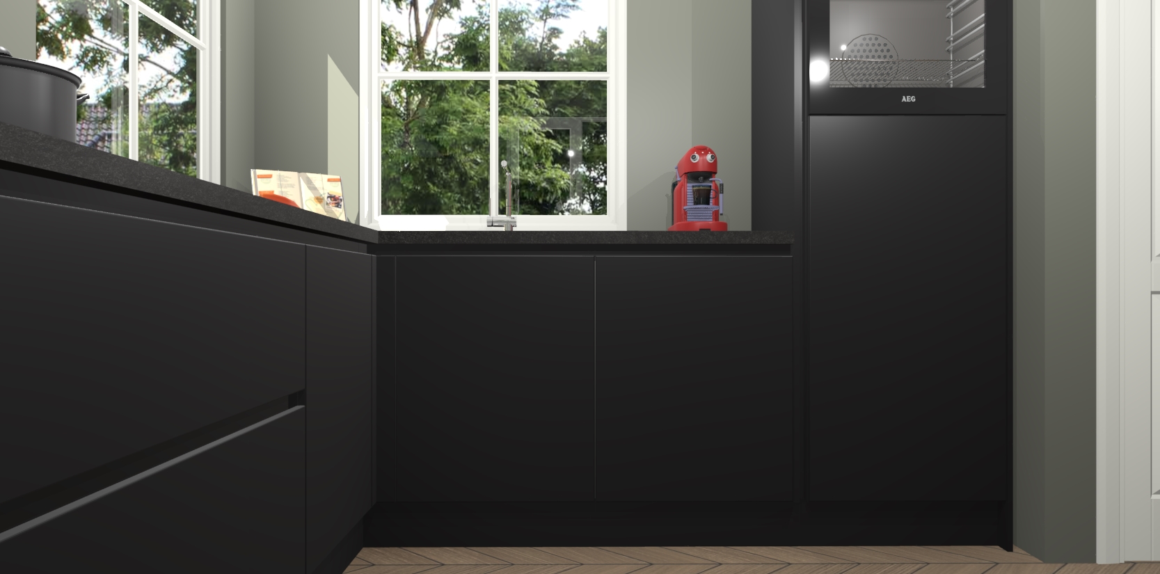 De Zwarte greeploze keuken Pai bevat vijf essentiële inbouwapparaten - een oven, inductiekookplaat, afzuigkap, vaatwasser en koelkast - zodat u er na levering meteen in kunt. Voor de slimme kopers die weten dat apparaten vaak het verschil kunnen maken tussen functioneel en luxueus, bieden we eenvoudige upgradeopties naar AEG, van oven naar combimagnetron na bestelling of naar een kookplaat met geïntrigeerde afzuiging. En met onze vaste lage prijs en snelle levering binnen zeven weken vanaf de orderbevestiging hoeft u zich geen zorgen te maken over verborgen kosten of lange levertijden die uw droomkeuken kunnen vertragen.