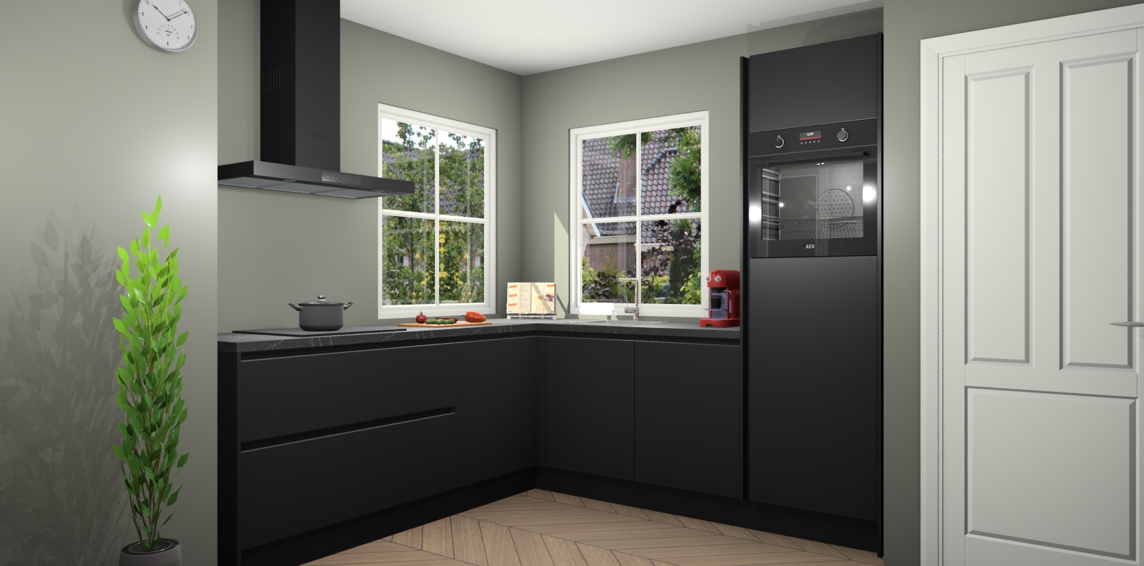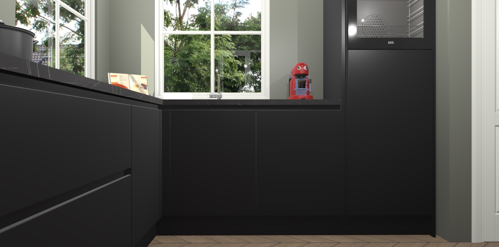 De Zwarte greeploze keuken Pai bevat vijf essentiële inbouwapparaten - een oven, inductiekookplaat, afzuigkap, vaatwasser en koelkast - zodat u er na levering meteen in kunt. Voor de slimme kopers die weten dat apparaten vaak het verschil kunnen maken tussen functioneel en luxueus, bieden we eenvoudige upgradeopties naar AEG, van oven naar combimagnetron na bestelling of naar een kookplaat met geïntrigeerde afzuiging. En met onze vaste lage prijs en snelle levering binnen zeven weken vanaf de orderbevestiging hoeft u zich geen zorgen te maken over verborgen kosten of lange levertijden die uw droomkeuken kunnen vertragen.