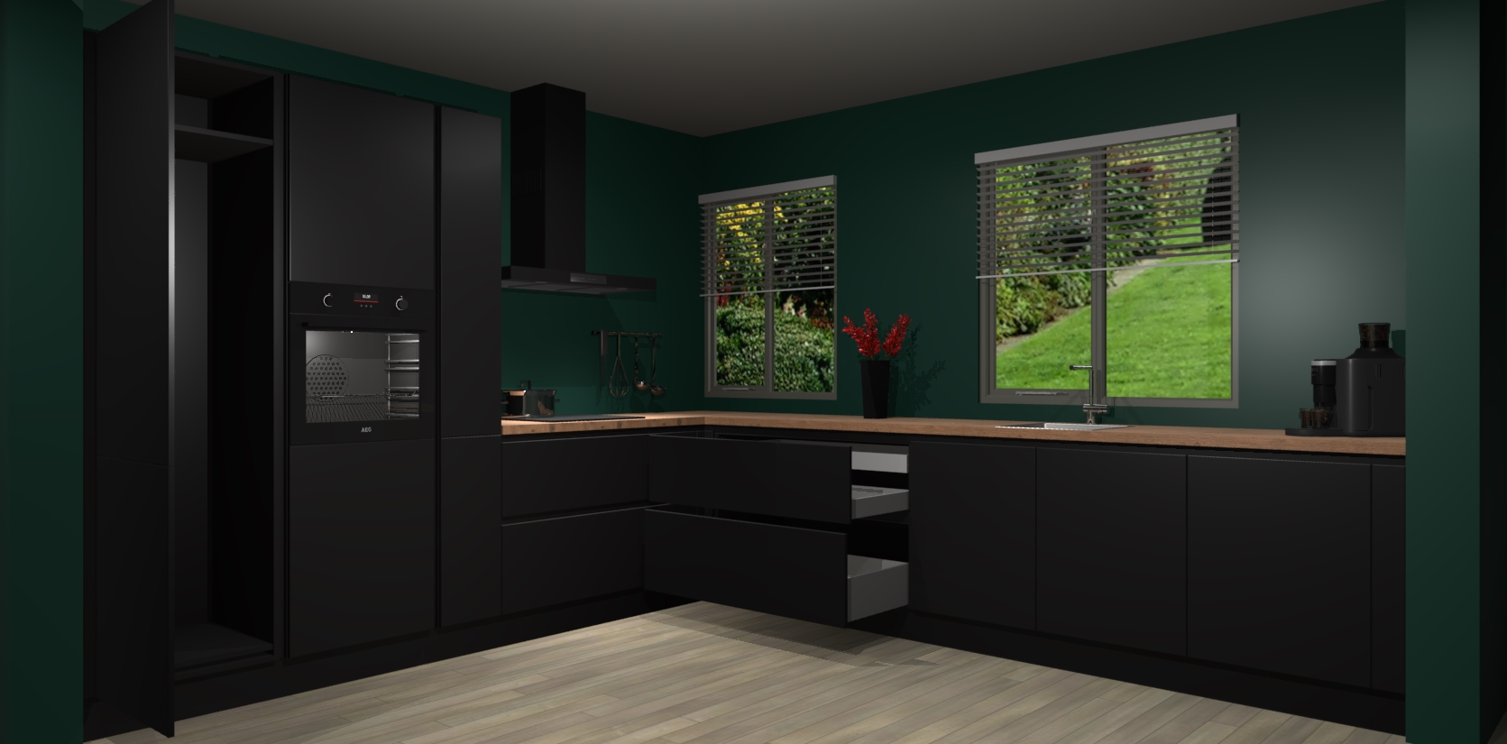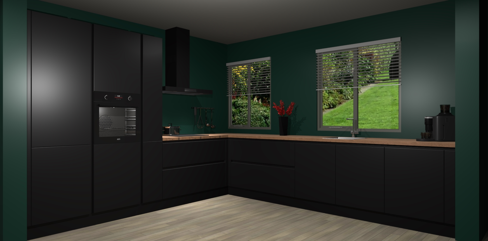 Welkom bij de Zwarte keuken Palermo. Deze prachtige keuken zal de komende jaren het middelpunt van de belangstelling in uw huis zijn. Uitgerust met vijf inbouwapparaten komt u nooit kookgereedschap tekort. Bovendien geeft de warme houtlook elke ruimte een uitnodigende en tijdloze uitstraling.