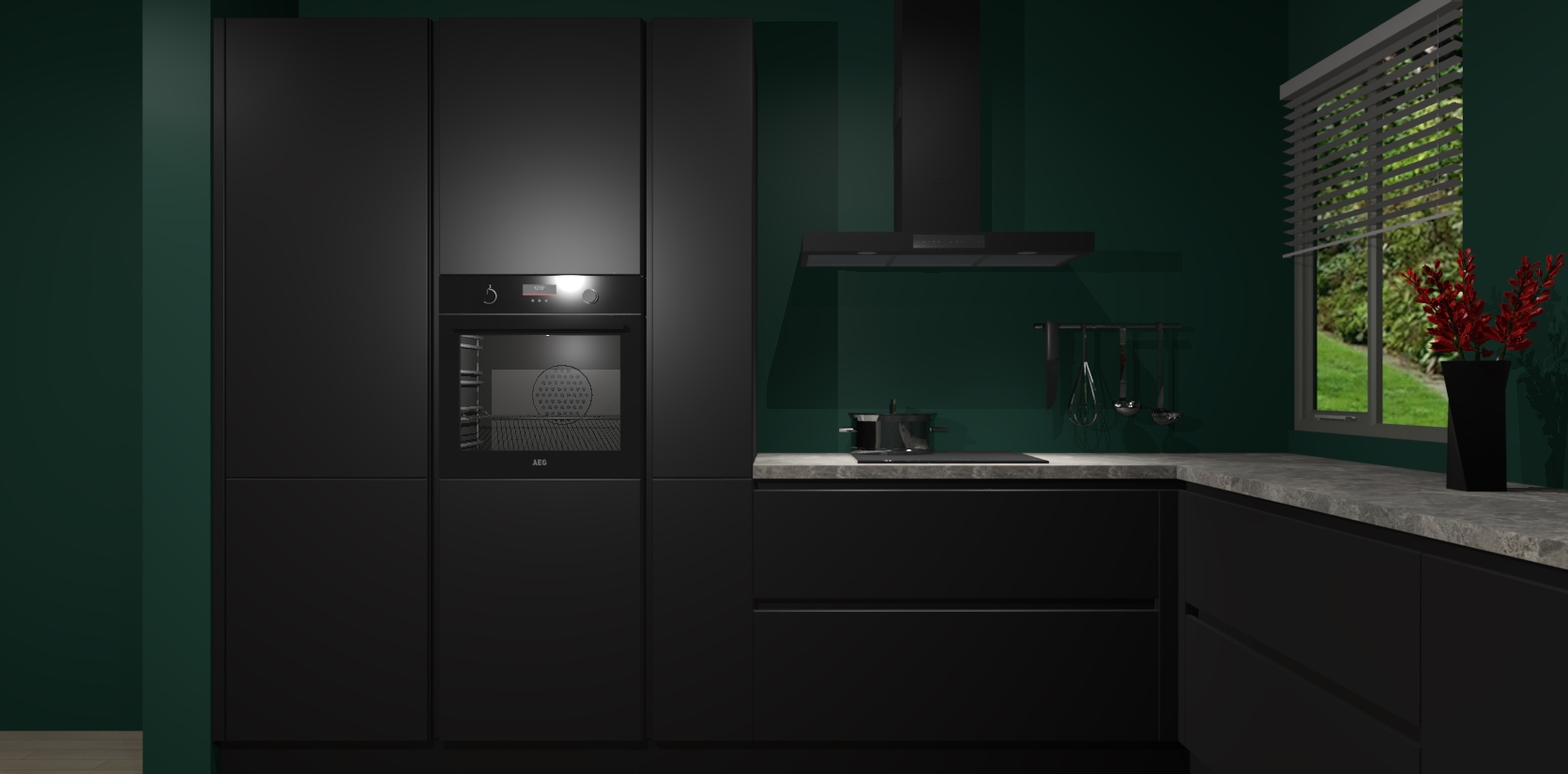 Welkom bij de Zwarte keuken Palermo. Deze prachtige keuken zal de komende jaren het middelpunt van de belangstelling in uw huis zijn. Uitgerust met vijf inbouwapparaten komt u nooit kookgereedschap tekort. Bovendien geeft de warme houtlook elke ruimte een uitnodigende en tijdloze uitstraling.