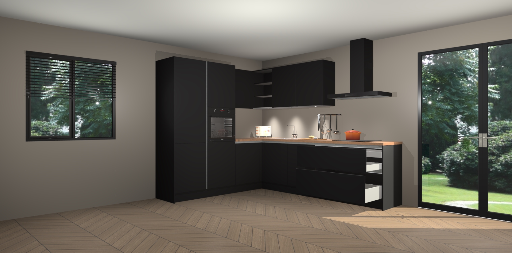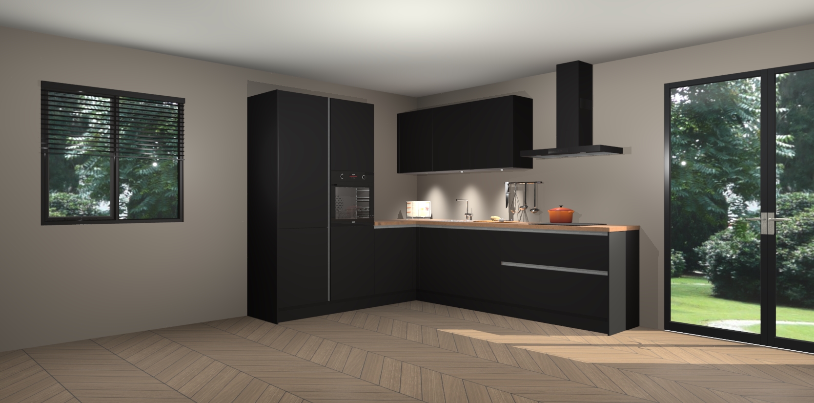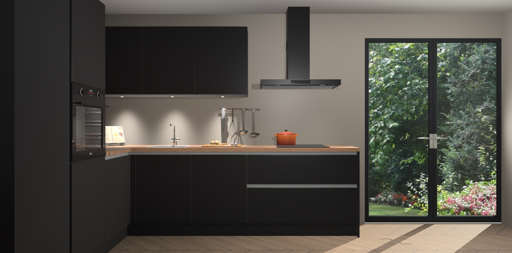 Maak kennis met de zwarte greeploze keuken Parla - de perfecte aanvulling voor uw moderne keuken! Ervaar tijdloos design, elegantie en een chique uitstraling met onze zwarte handgrepen, soft-close deuren en veel opbergruimte. Dit alles wordt aangeboden tegen een vaste lage prijs voor ongeëvenaarde Duitse keukenkwaliteit!