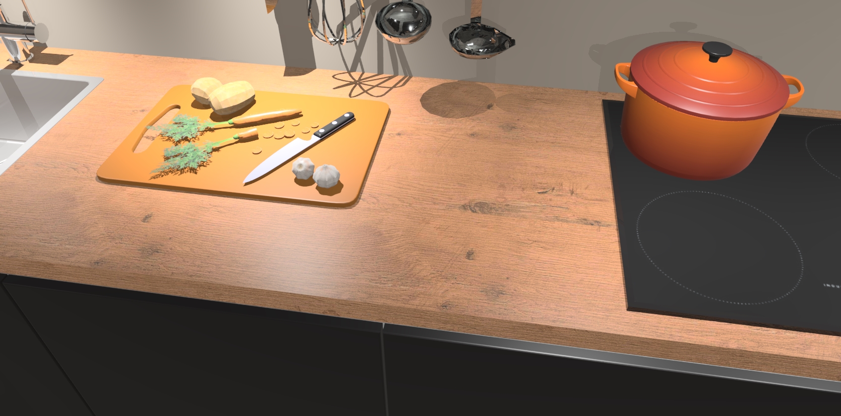 - Uitsparing van kookplaat, spoelbak en kraan dient u zelf te verzorgen.