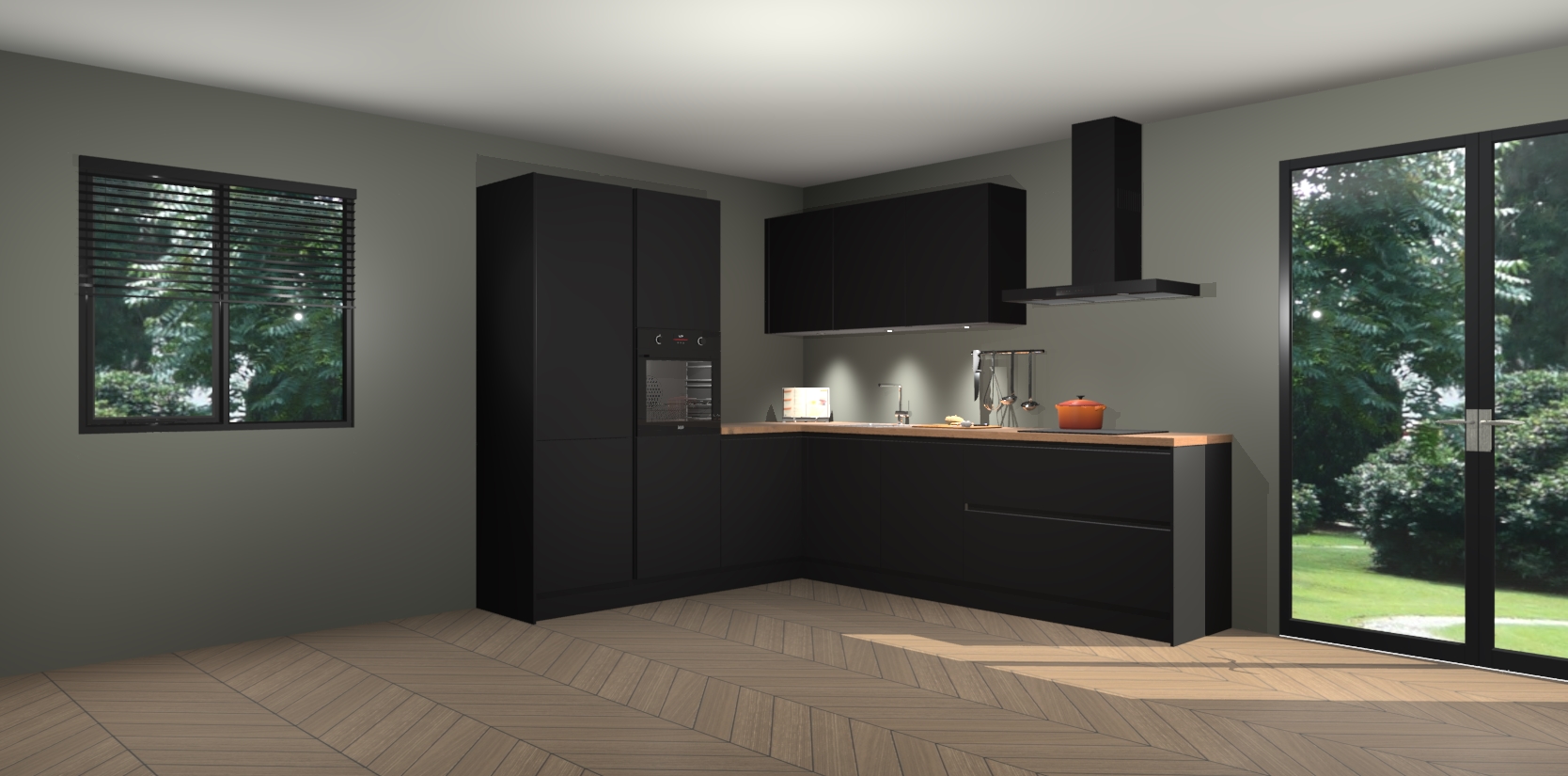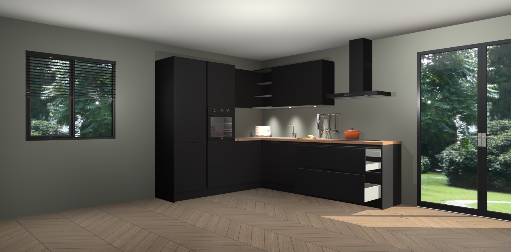 Maak kennis met de zwarte greeploze keuken Parla - de perfecte aanvulling voor uw moderne keuken! Ervaar tijdloos design, elegantie en een chique uitstraling met onze zwarte handgrepen, soft-close deuren en veel opbergruimte. Dit alles wordt aangeboden tegen een vaste lage prijs voor ongeëvenaarde Duitse keukenkwaliteit!