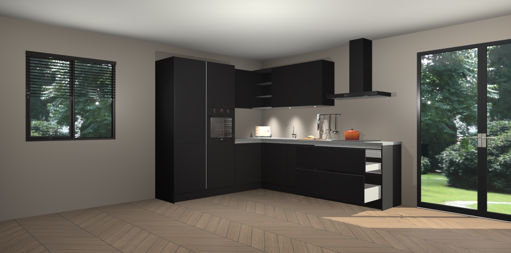 Maak kennis met de zwarte greeploze keuken Parla - de perfecte aanvulling voor uw moderne keuken! Ervaar tijdloos design, elegantie en een chique uitstraling met onze zwarte handgrepen, soft-close deuren en veel opbergruimte. Dit alles wordt aangeboden tegen een vaste lage prijs voor ongeëvenaarde Duitse keukenkwaliteit!