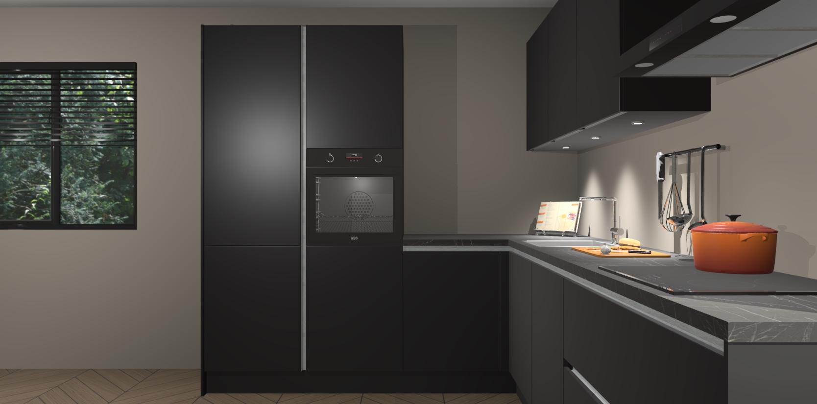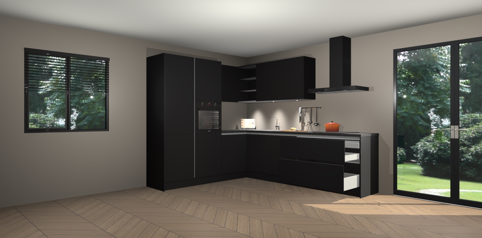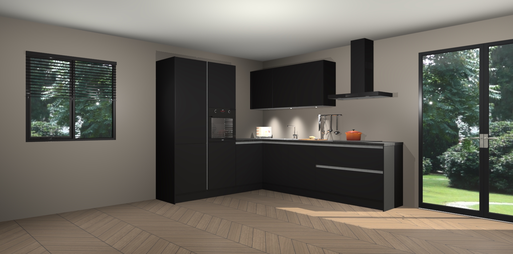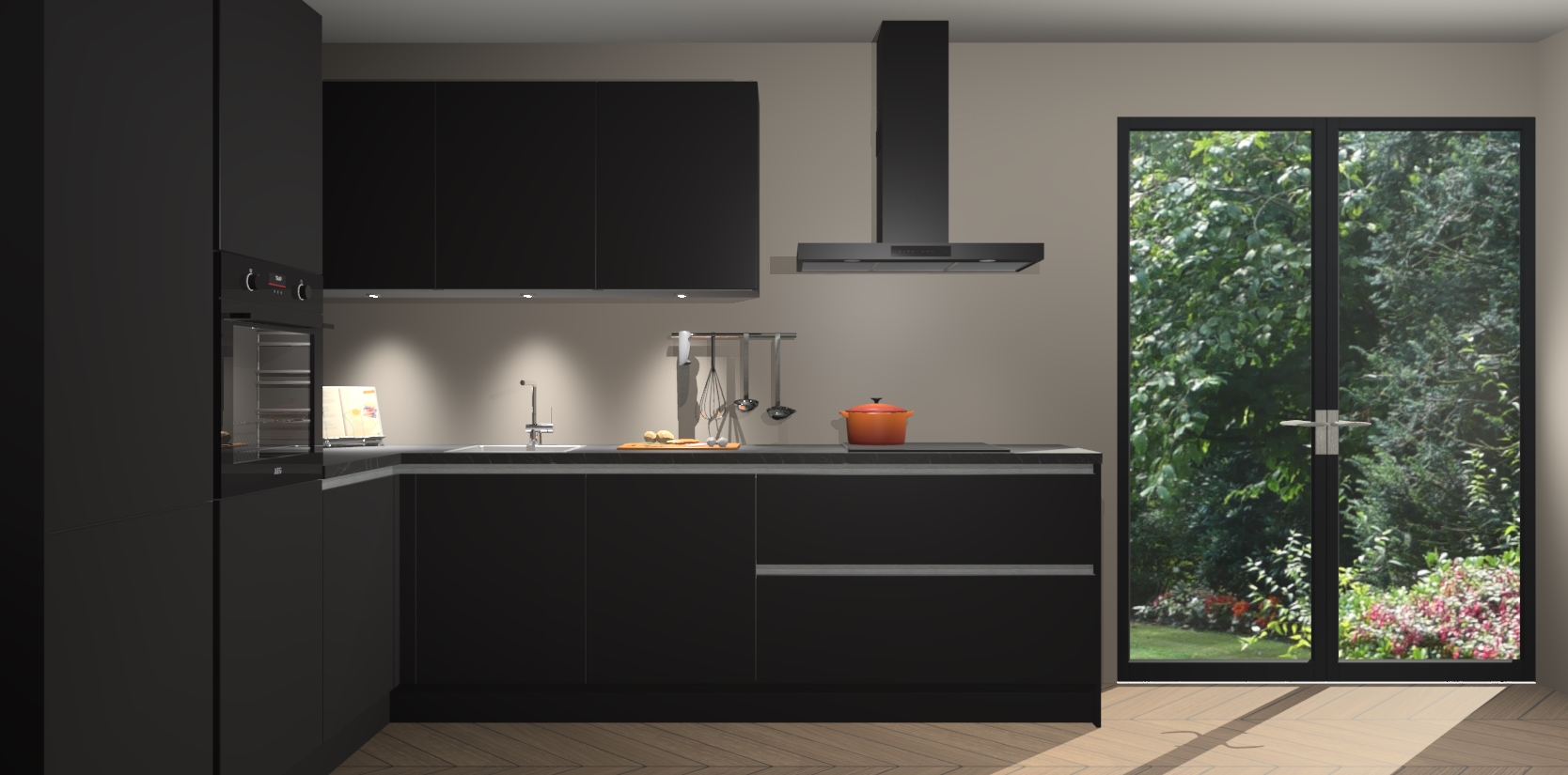 Maak kennis met de zwarte greeploze keuken Parla - de perfecte aanvulling voor uw moderne keuken! Ervaar tijdloos design, elegantie en een chique uitstraling met onze zwarte handgrepen, soft-close deuren en veel opbergruimte. Dit alles wordt aangeboden tegen een vaste lage prijs voor ongeëvenaarde Duitse keukenkwaliteit!