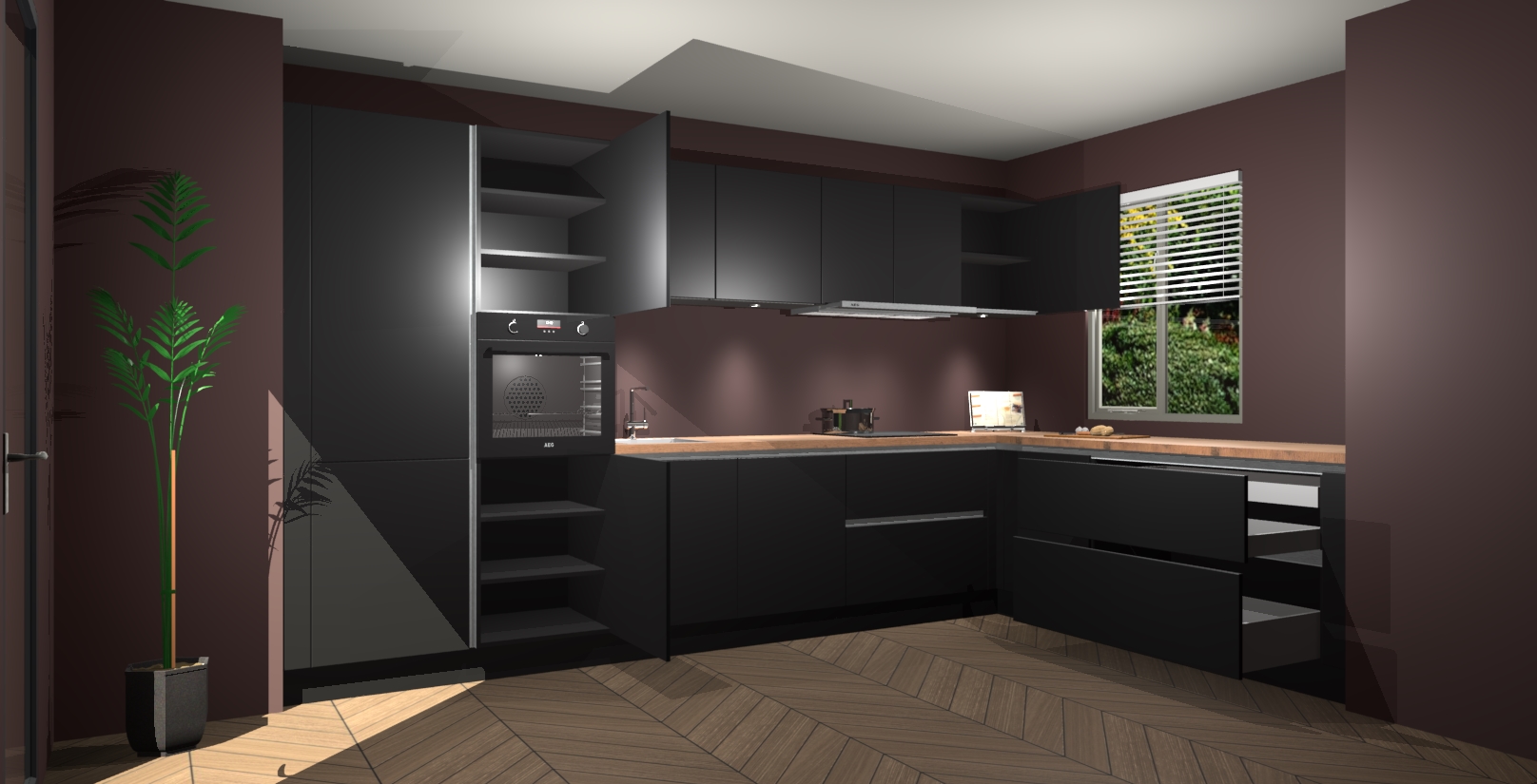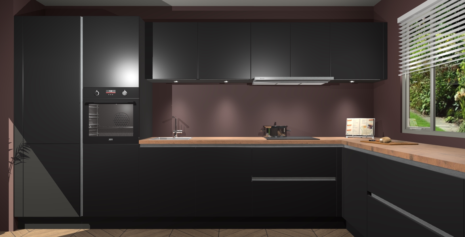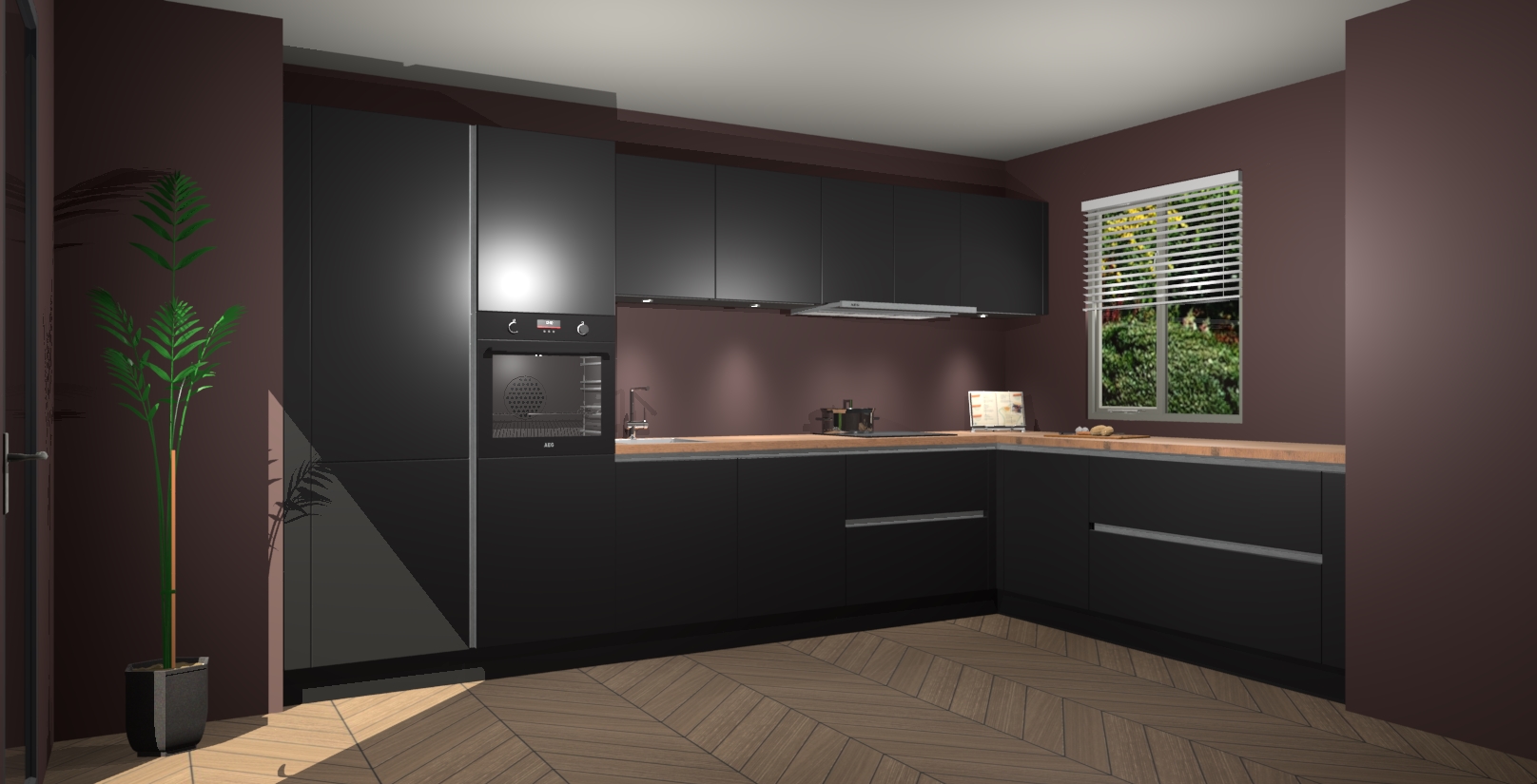 Verwelkom de natuurlijke warmte van de Zwarte greeploze keuken Petten in uw huis. Deze prachtige hoekkeuken met zijn moderne design en warme houten look geeft u meer dan genoeg opbergruimte om uw comfortabel te voelen in uw keuken. Geniet van soft-close deuren die al uw gasten het gevoel zullen geven dat ze zich in een luxueuze ruimte bevinden.