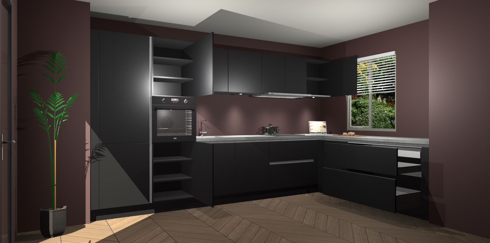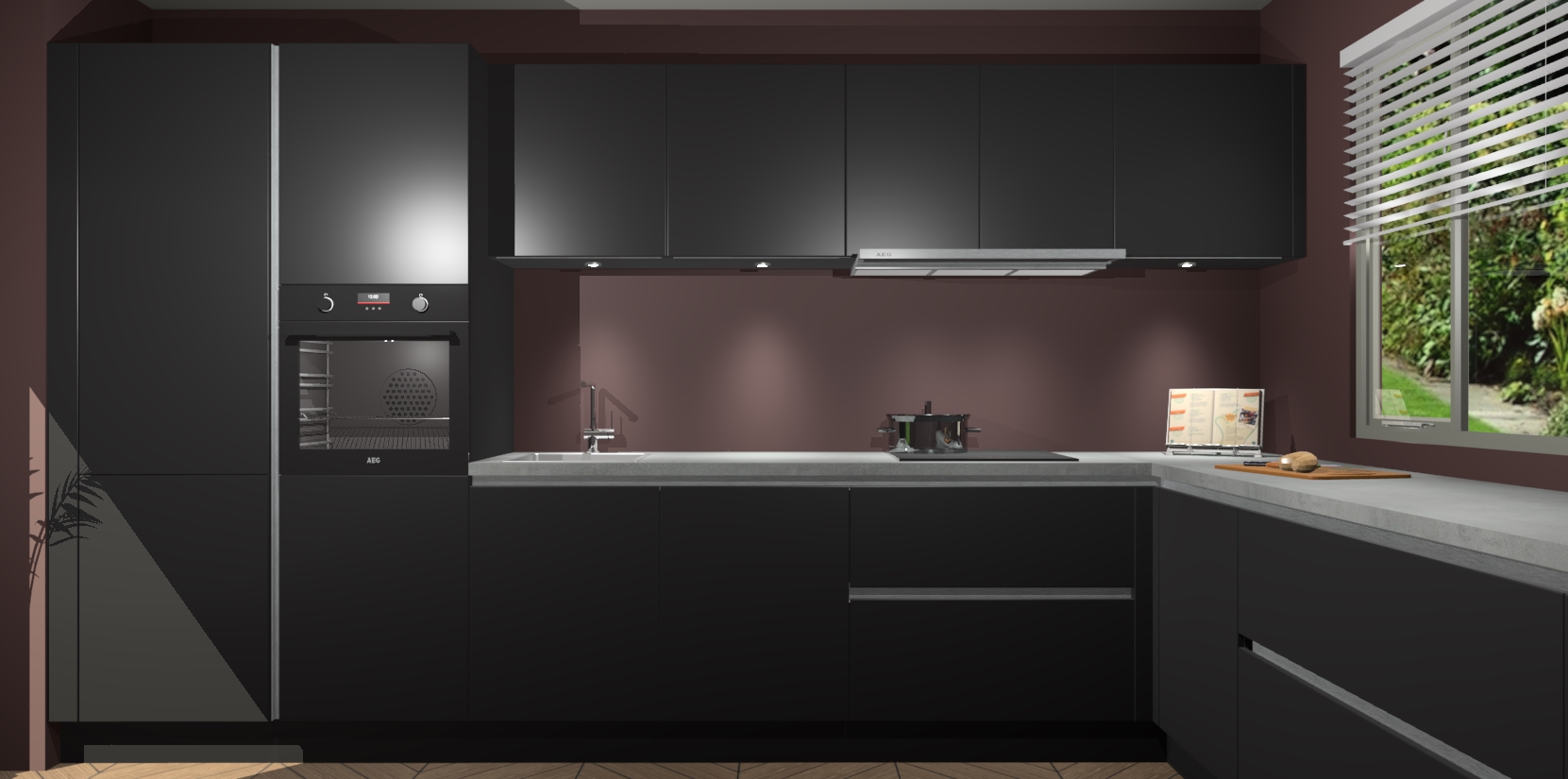 Verwelkom de natuurlijke warmte van de Zwarte greeploze keuken Petten in uw huis. Deze prachtige hoekkeuken met zijn moderne design en warme houten look geeft u meer dan genoeg opbergruimte om uw comfortabel te voelen in uw keuken. Geniet van soft-close deuren die al uw gasten het gevoel zullen geven dat ze zich in een luxueuze ruimte bevinden.
