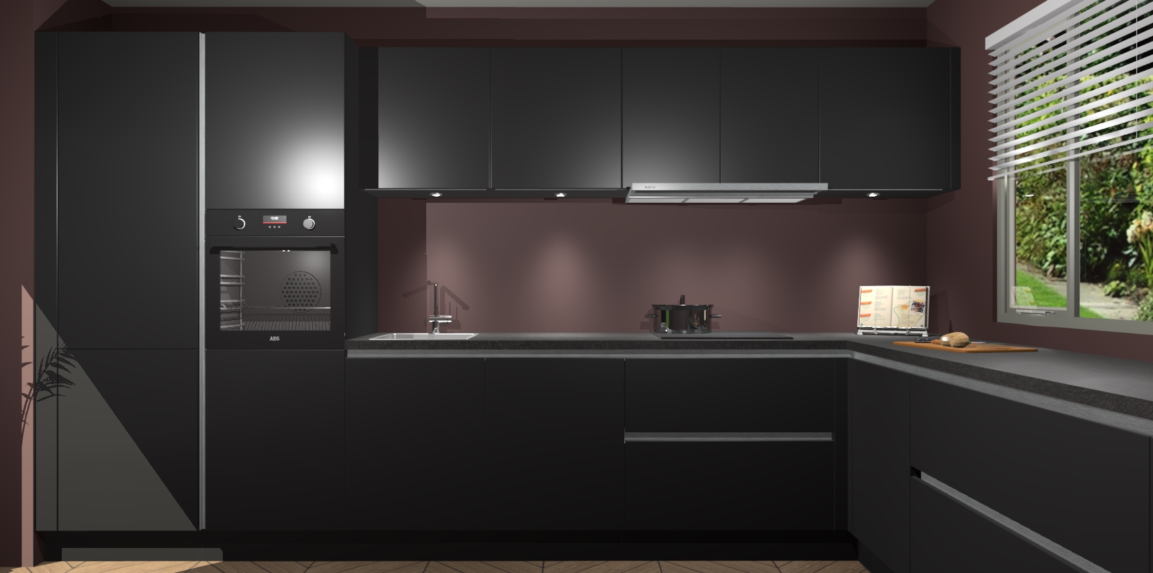 Verwelkom de natuurlijke warmte van de Zwarte greeploze keuken Petten in uw huis. Deze prachtige hoekkeuken met zijn moderne design en warme houten look geeft u meer dan genoeg opbergruimte om uw comfortabel te voelen in uw keuken. Geniet van soft-close deuren die al uw gasten het gevoel zullen geven dat ze zich in een luxueuze ruimte bevinden.