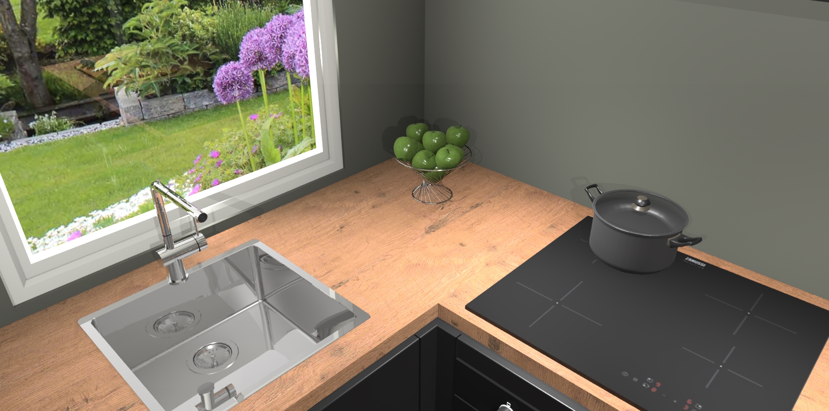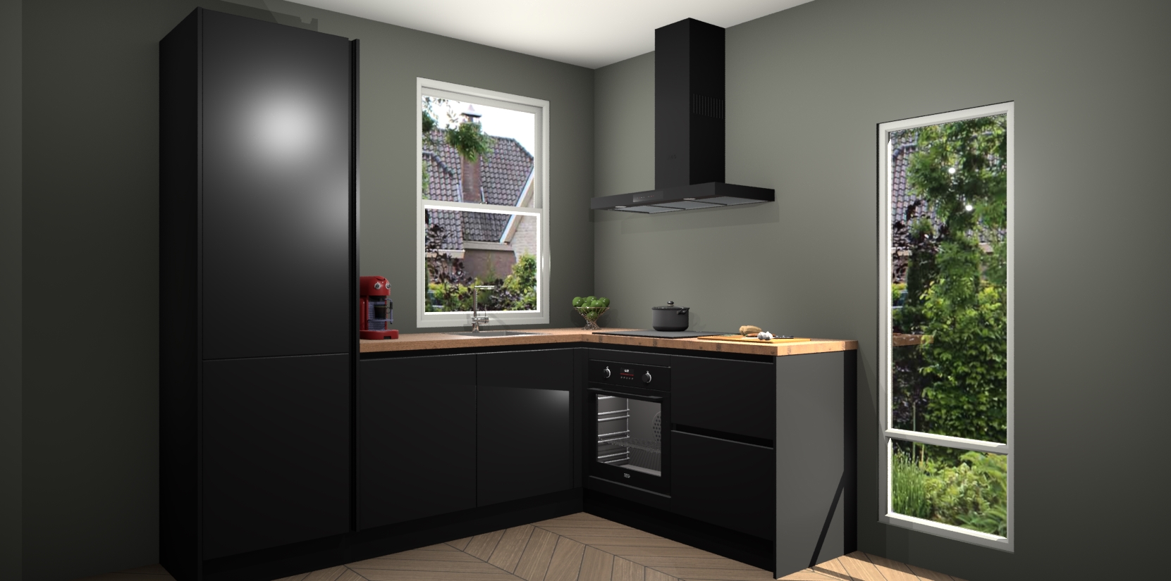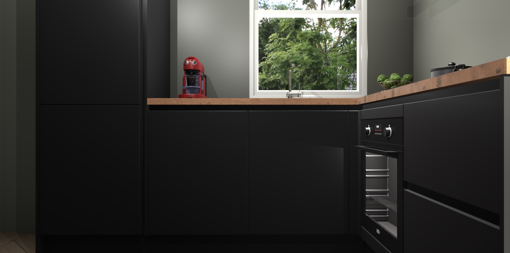 De Zwarte greeploze keuken Phuket heeft alles wat u maar kunt wensen. Niet alleen zijn er softclose deuren, maar ook 5 ingebouwde apparaten: een oven, inductiekookplaat, afzuigkap, vaatwasser en koelkast - waarbij u later gemakkelijk naar het AEG merk, van inductiekookplaat naar kookplaat met geïntegreerde afzuiging of van oven naar combimagnetron kunt upgraden. Dat alles tegen een vast laag tarief! Bovendien geeft de Zwarte greeploze keuken Phuket supersnelle levering van 7 weken. Echt iets voor u als u er niet op wilt wachten om het resultaat te zien in eigen keuken!