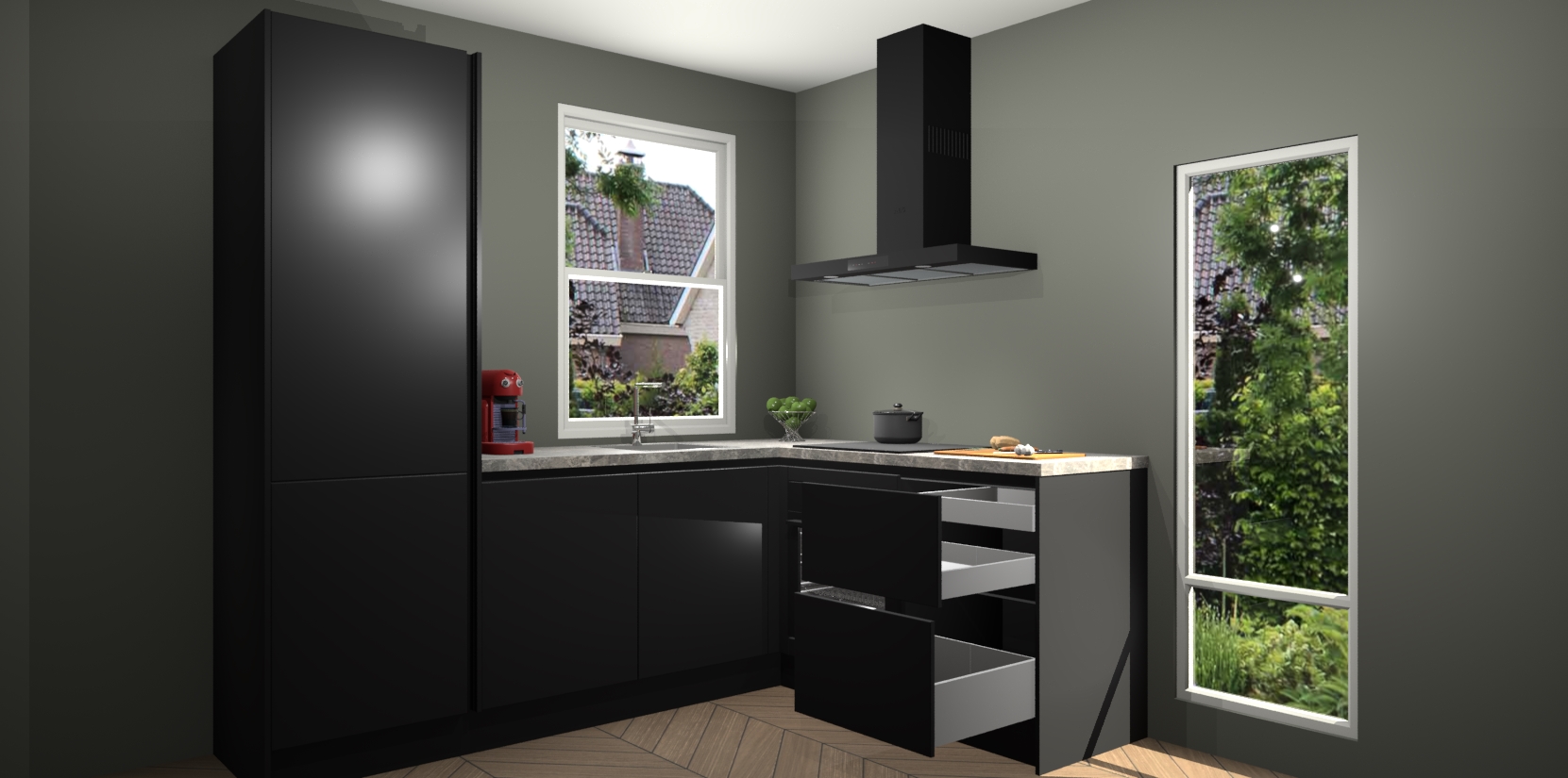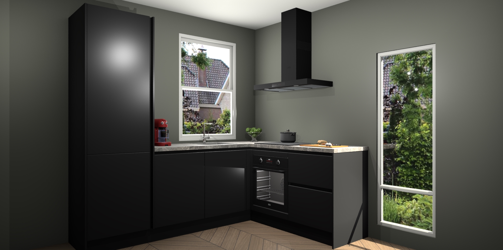 De prachtige Zwarte greeploze keuken Phuket is de perfecte keuze als u op zoek bent naar een moderne hoekkeuken met alle luxe en comfort die u kunt verwachten! De uitstraling in het houtlook-design draagt bij aan de warme sfeer die u nu al voelt wanneer u er naar kijkt. Heeft u genoeg van ouderwetse keukens? Probeer dan direct deze moderne, mooie hoekkeukens en laat iedereen verbluft achter!