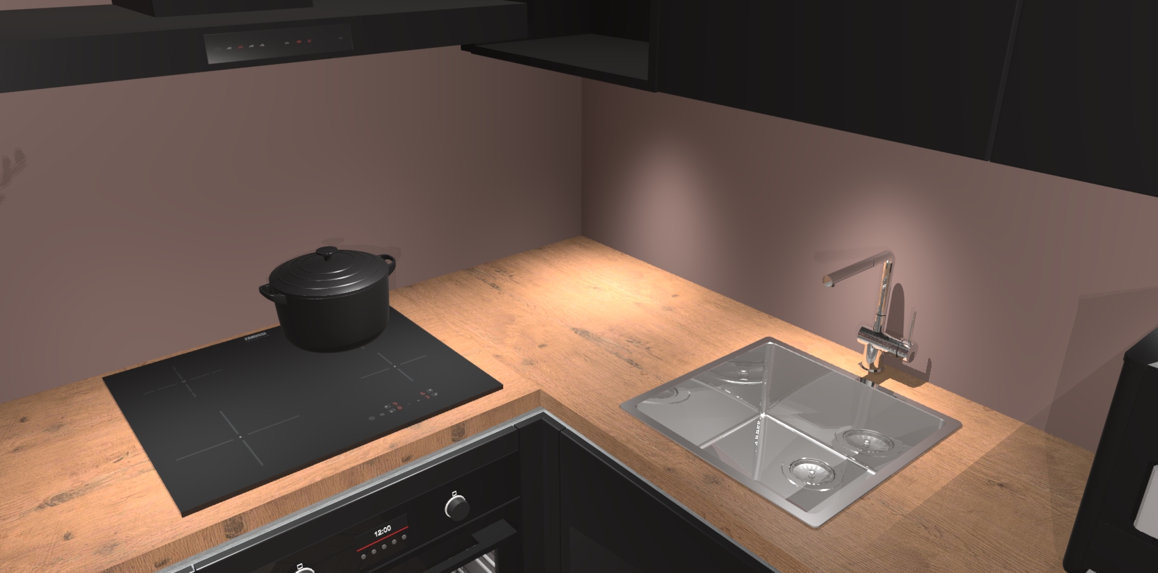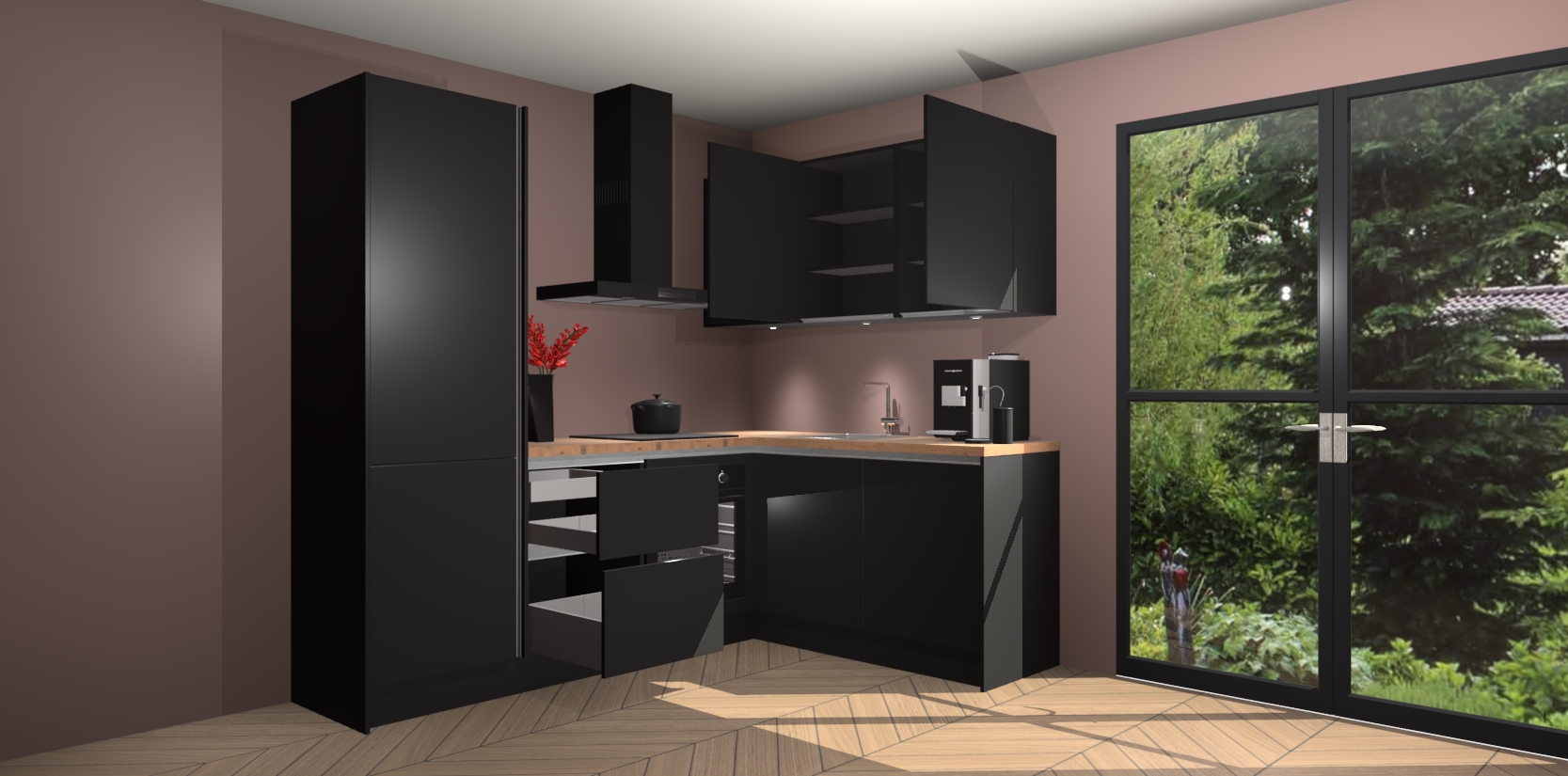 Wauw, dit is de Zwarte greeploze keuken Pilsen! U kunt gerust zeggen dat u elegantie combineert met functionaliteit met deze keuken. Met een modern en chique ontwerp is de keuken precies wat u nodig heeft om uw ruimte te verfraaien. De binnenzijde van de kasten is in dezelfde donkere kleur als de buitenzijde voor een uniforme look, compleet met softclose-kasten die stil sluiten.