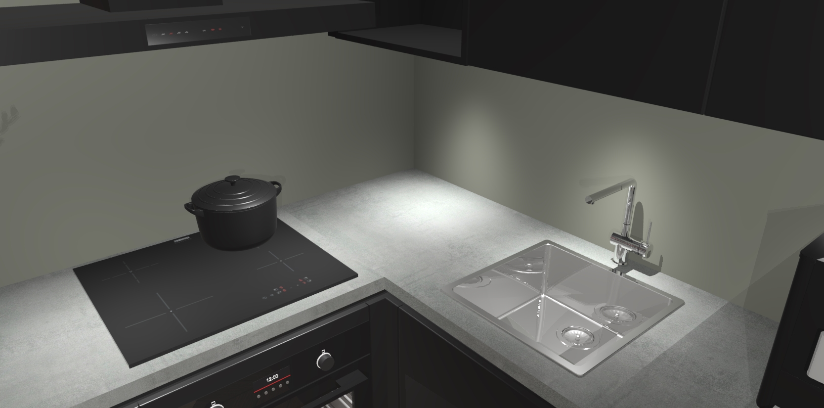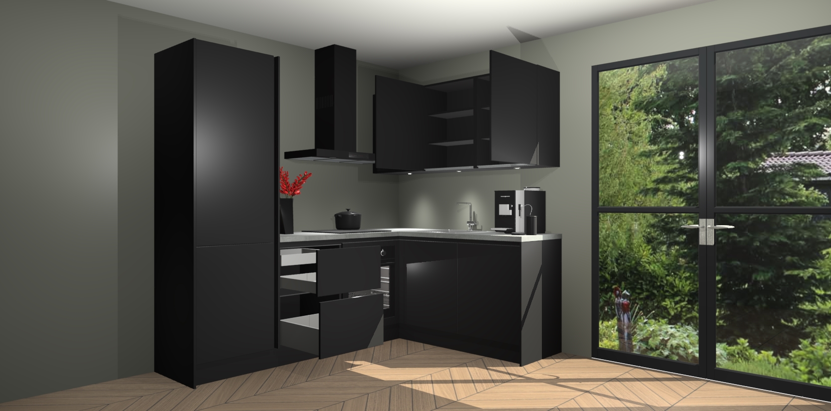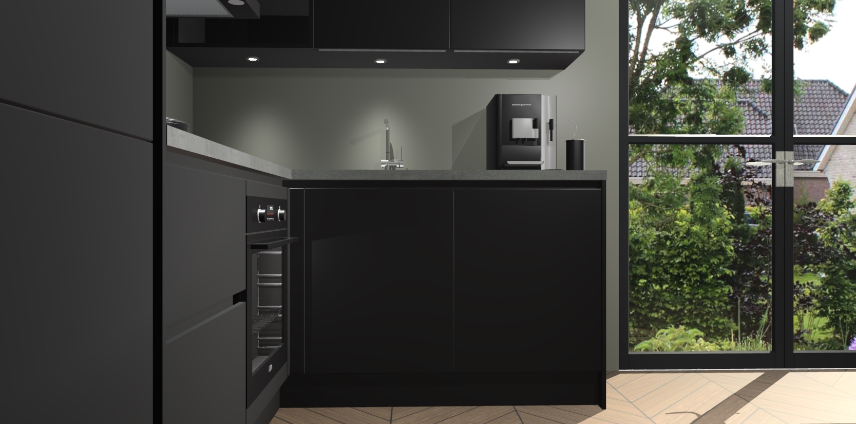 Wauw, dit is de Zwarte greeploze keuken Pilsen! U kunt gerust zeggen dat u elegantie combineert met functionaliteit met deze keuken. Met een modern en chique ontwerp is de keuken precies wat u nodig heeft om uw ruimte te verfraaien. De binnenzijde van de kasten is in dezelfde donkere kleur als de buitenzijde voor een uniforme look, compleet met softclose-kasten die stil sluiten.