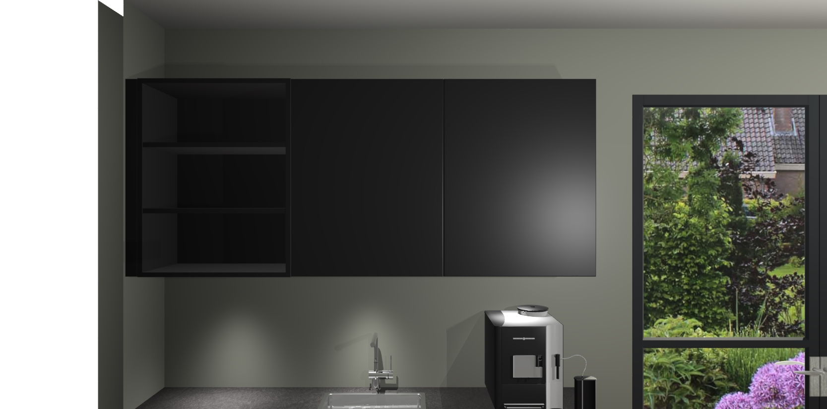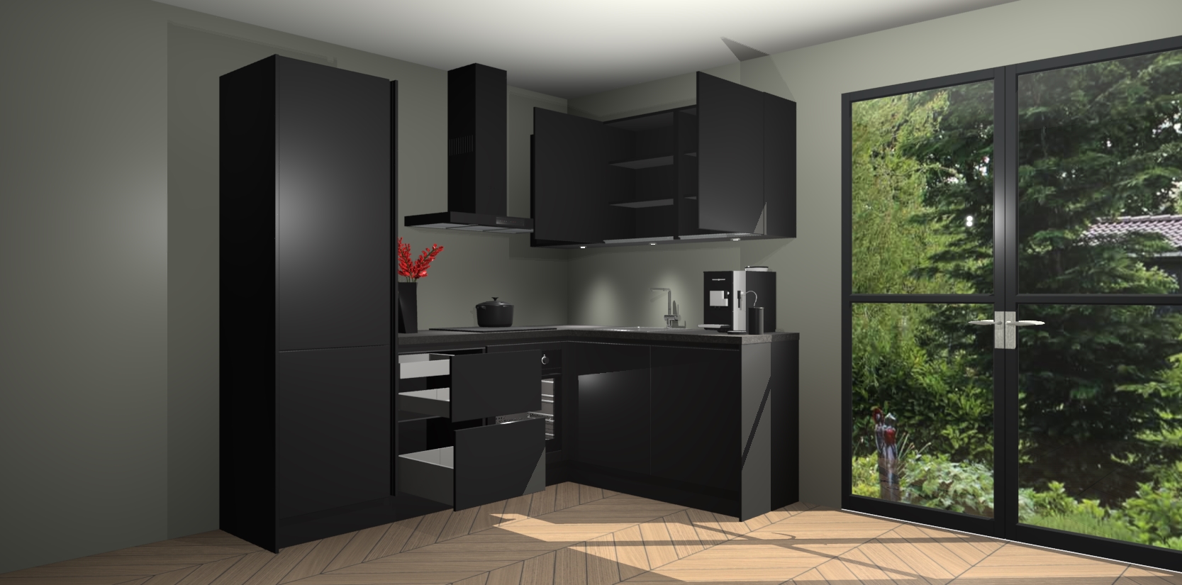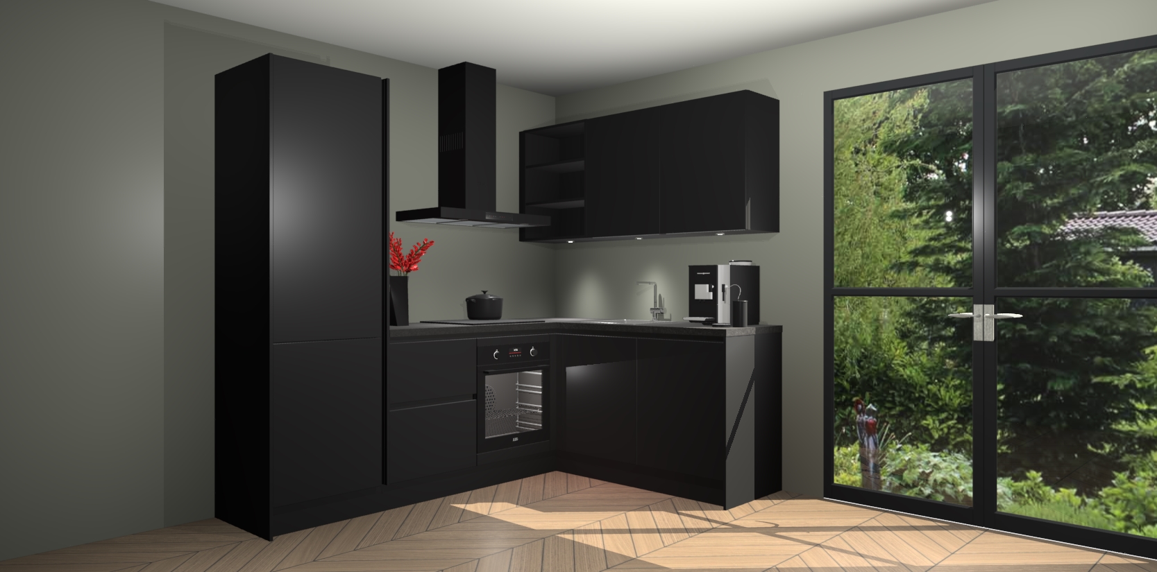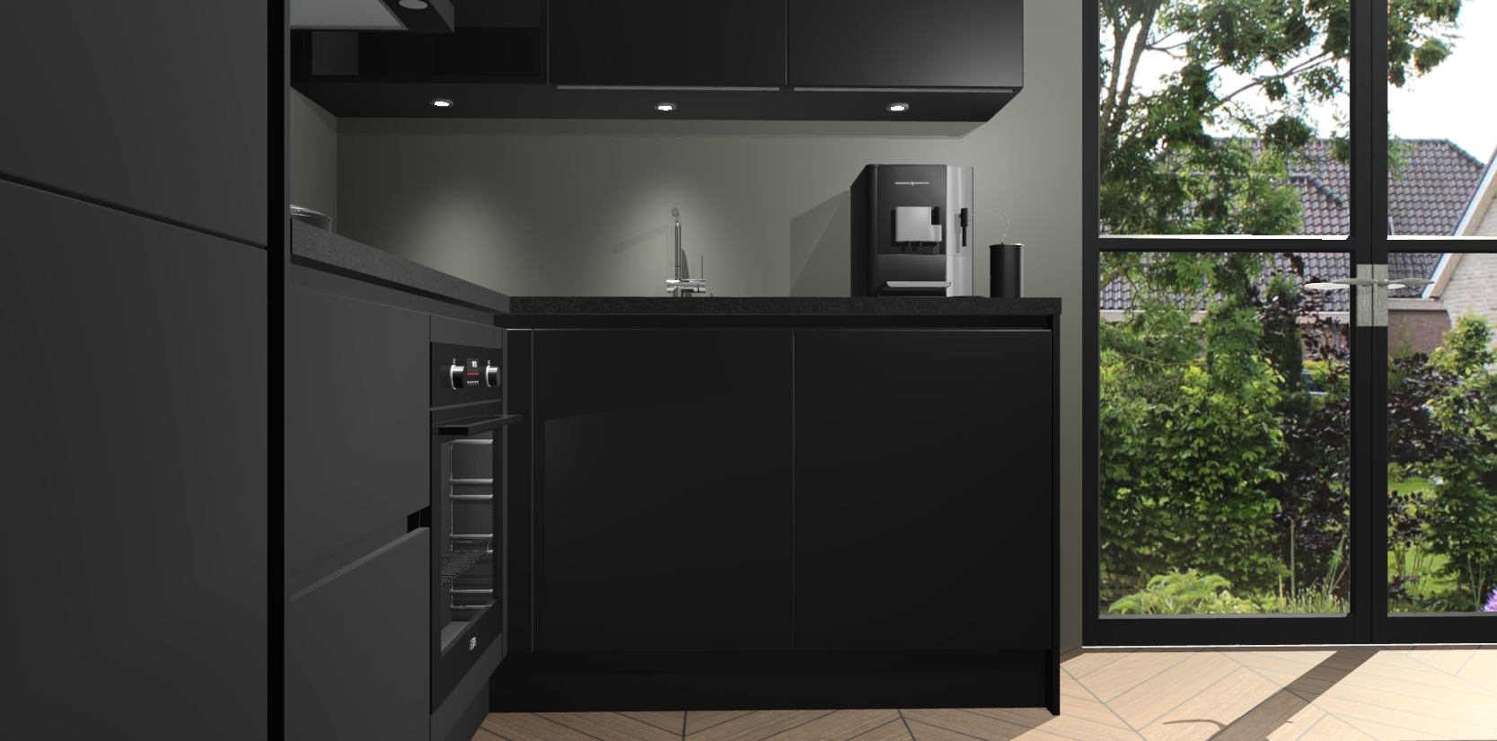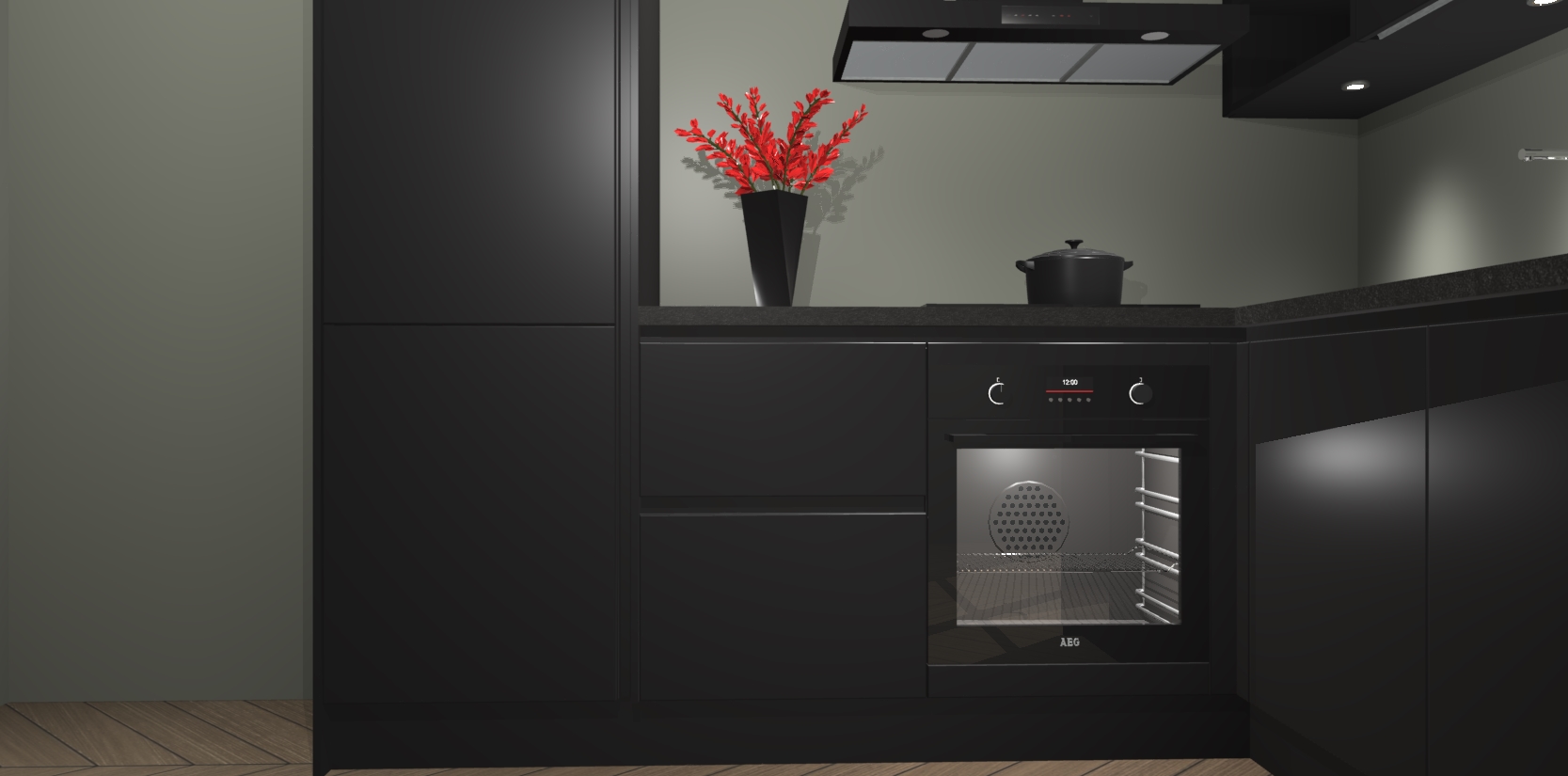 Wauw, dit is de Zwarte greeploze keuken Pilsen! U kunt gerust zeggen dat u elegantie combineert met functionaliteit met deze keuken. Met een modern en chique ontwerp is de keuken precies wat u nodig heeft om uw ruimte te verfraaien. De binnenzijde van de kasten is in dezelfde donkere kleur als de buitenzijde voor een uniforme look, compleet met softclose-kasten die stil sluiten.