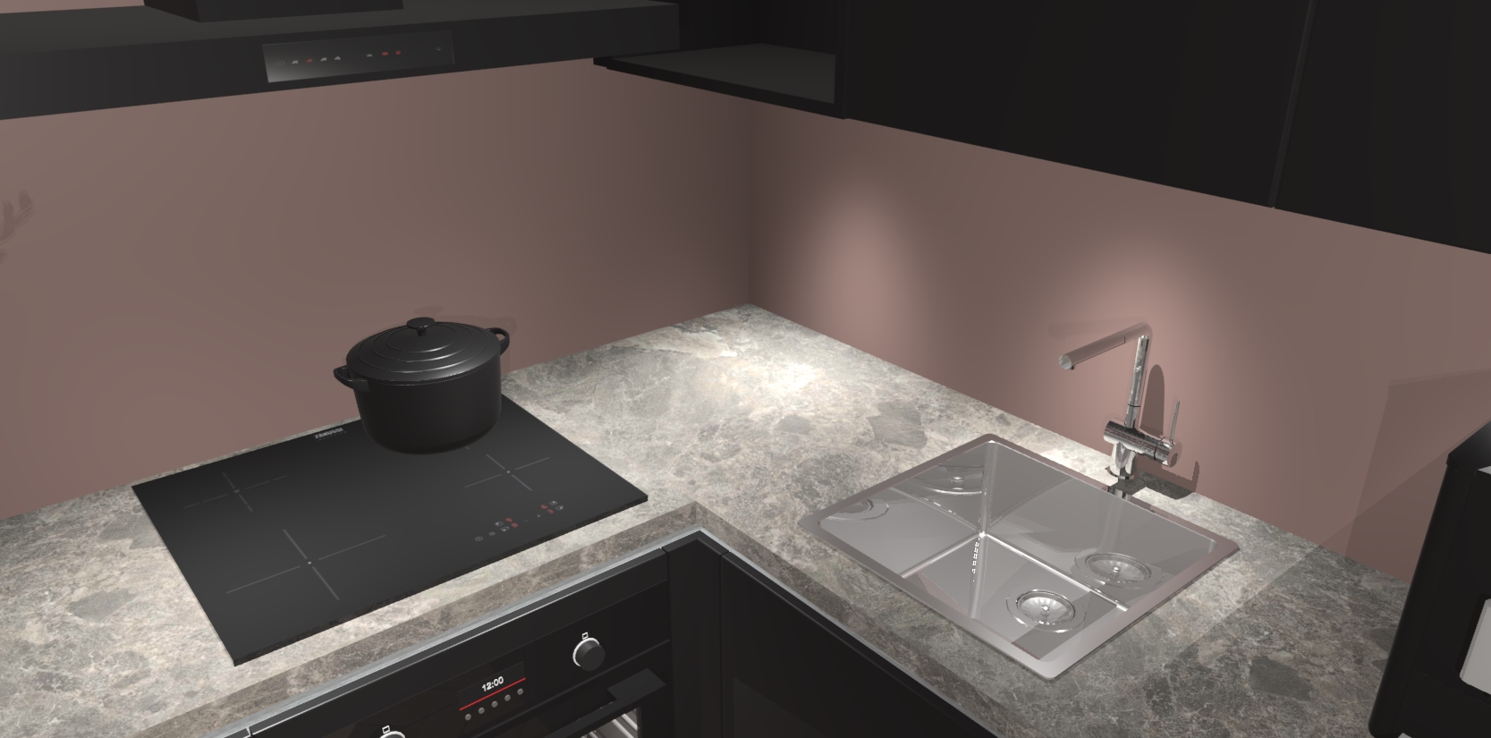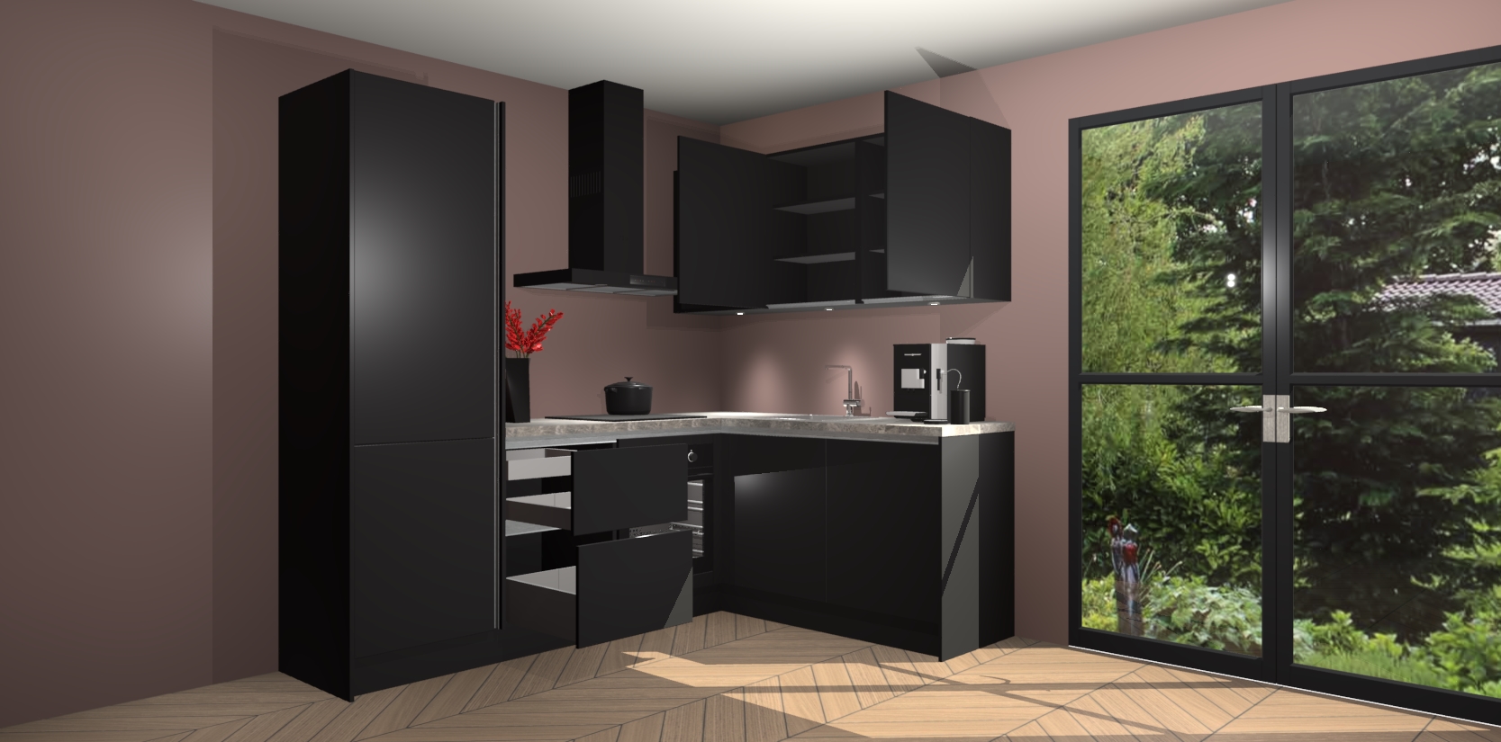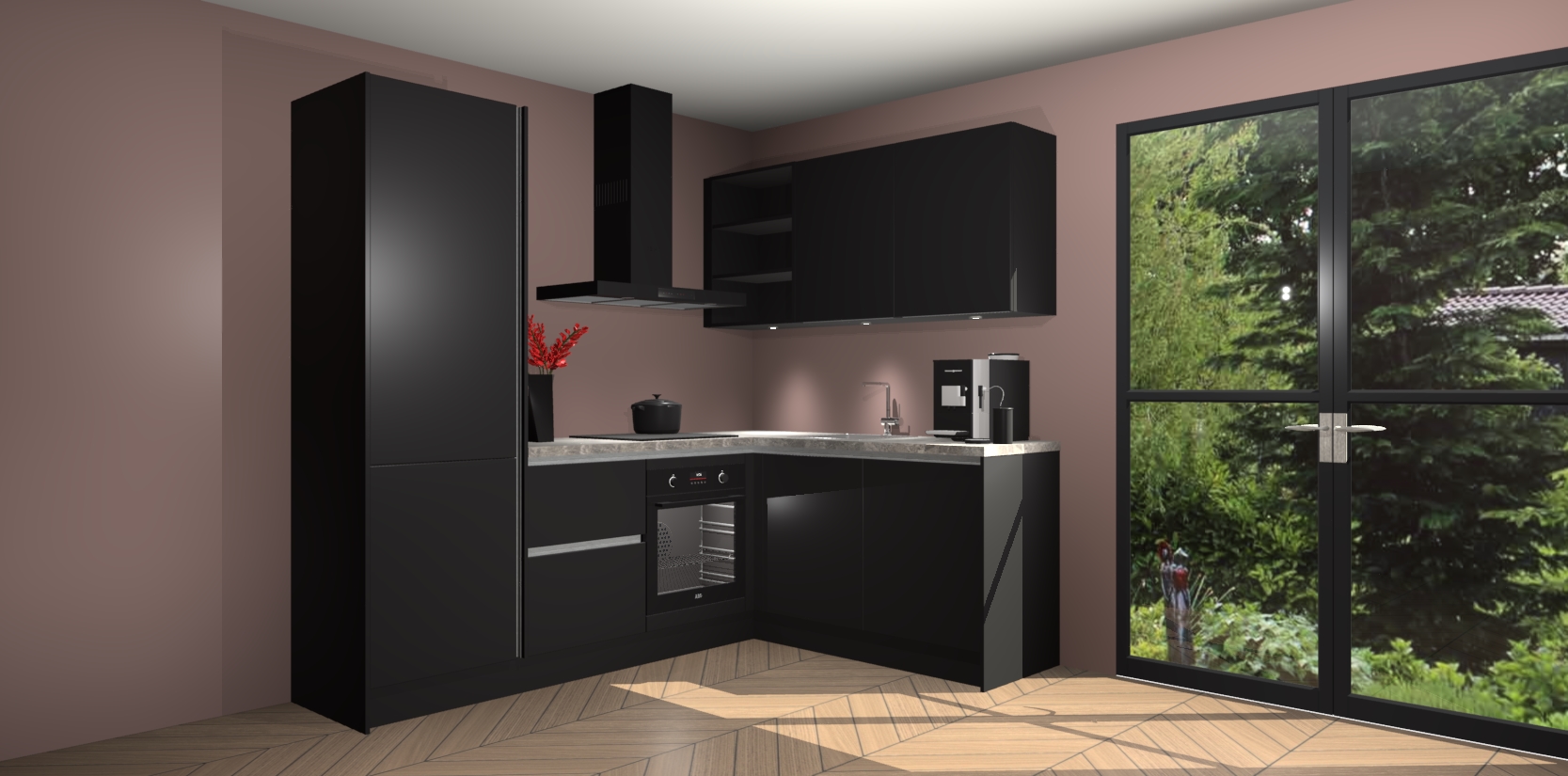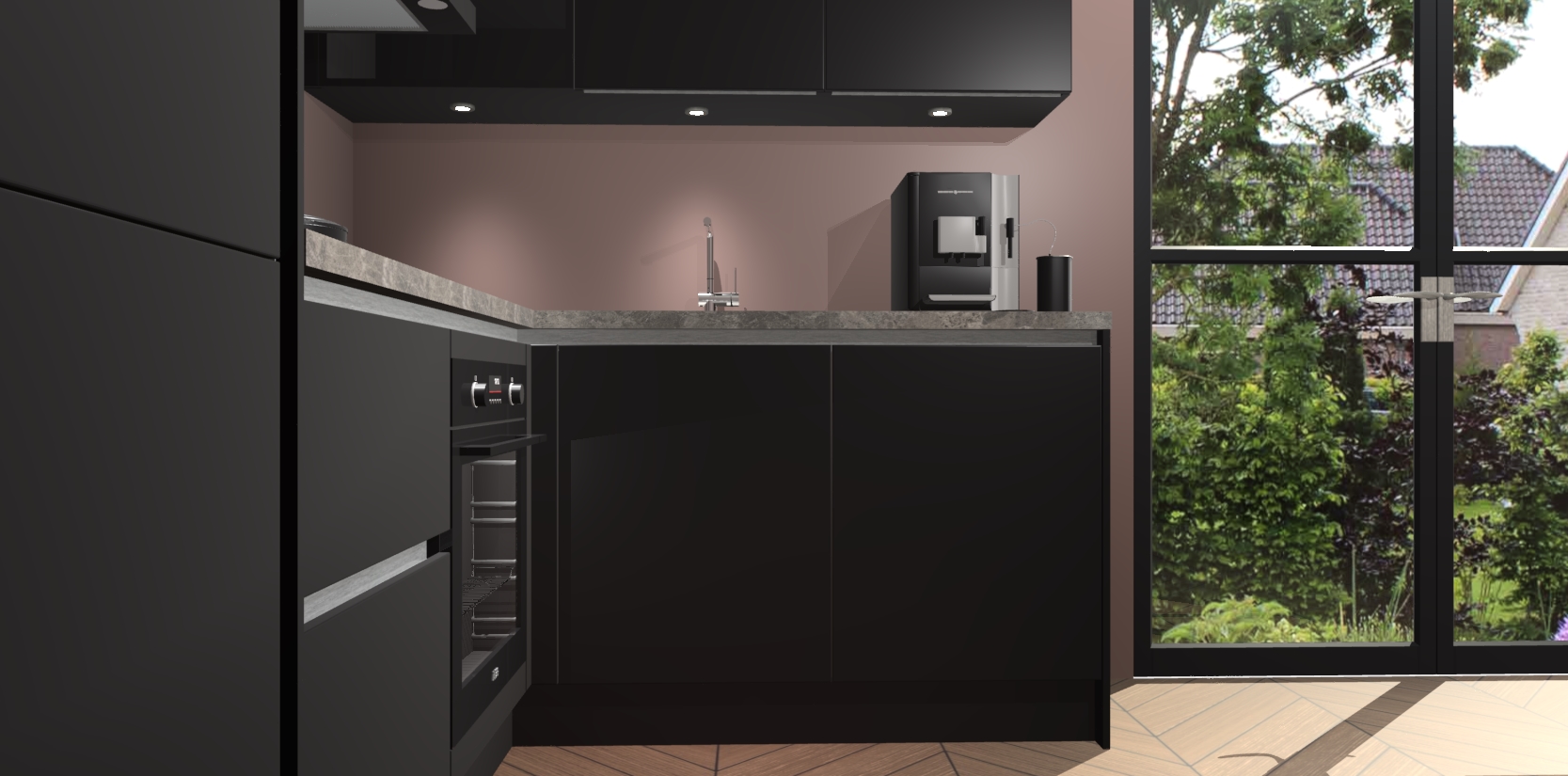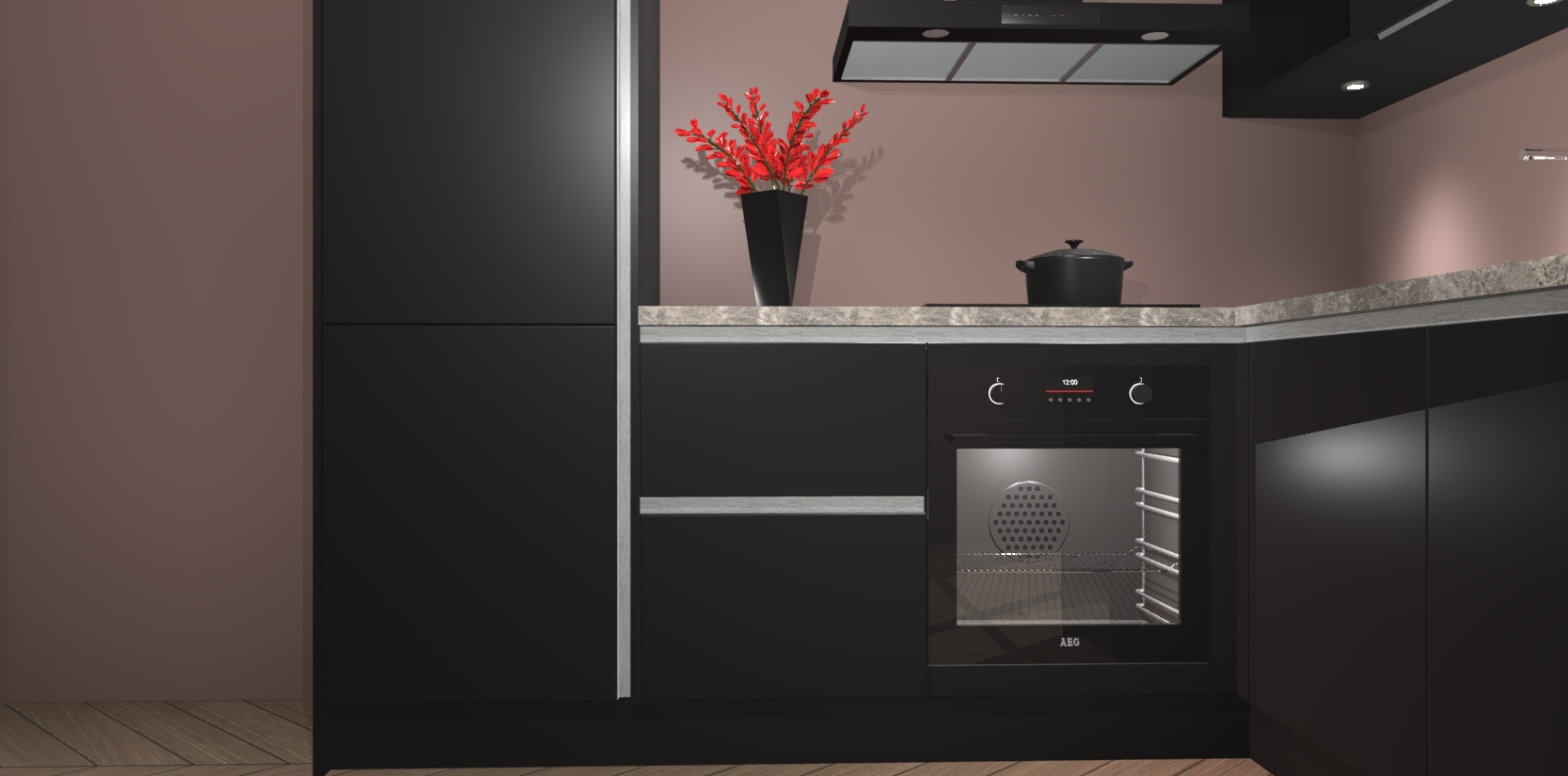 Wauw, dit is de Zwarte greeploze keuken Pilsen! U kunt gerust zeggen dat u elegantie combineert met functionaliteit met deze keuken. Met een modern en chique ontwerp is de keuken precies wat u nodig heeft om uw ruimte te verfraaien. De binnenzijde van de kasten is in dezelfde donkere kleur als de buitenzijde voor een uniforme look, compleet met softclose-kasten die stil sluiten.