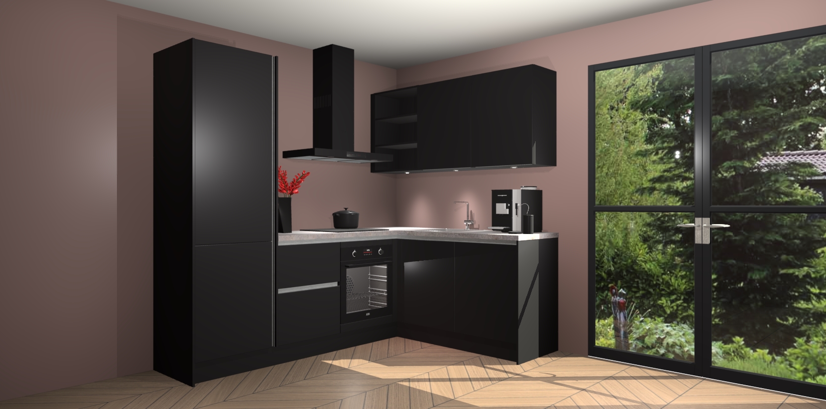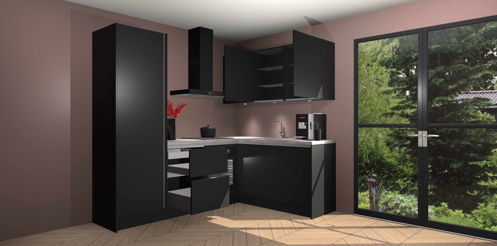Wauw, dit is de Zwarte greeploze keuken Pilsen! U kunt gerust zeggen dat u elegantie combineert met functionaliteit met deze keuken. Met een modern en chique ontwerp is de keuken precies wat u nodig heeft om uw ruimte te verfraaien. De binnenzijde van de kasten is in dezelfde donkere kleur als de buitenzijde voor een uniforme look, compleet met softclose-kasten die stil sluiten.