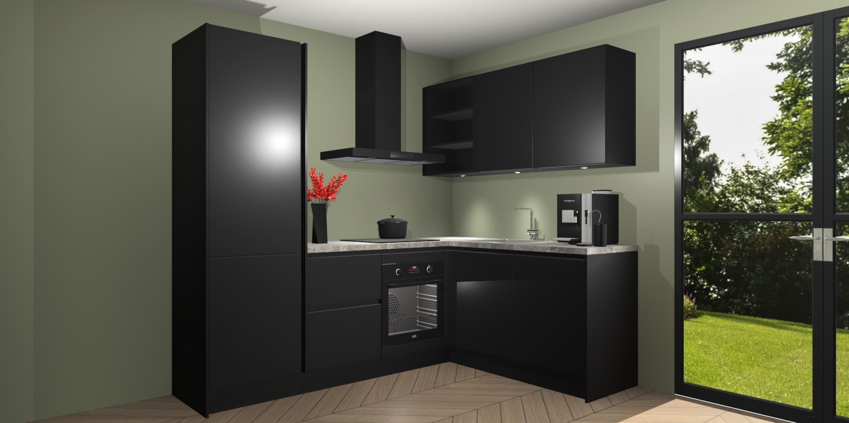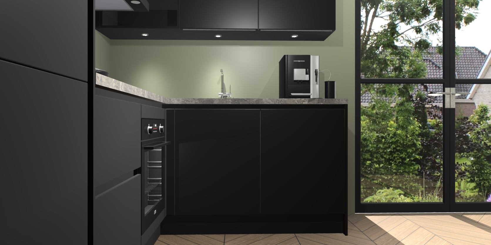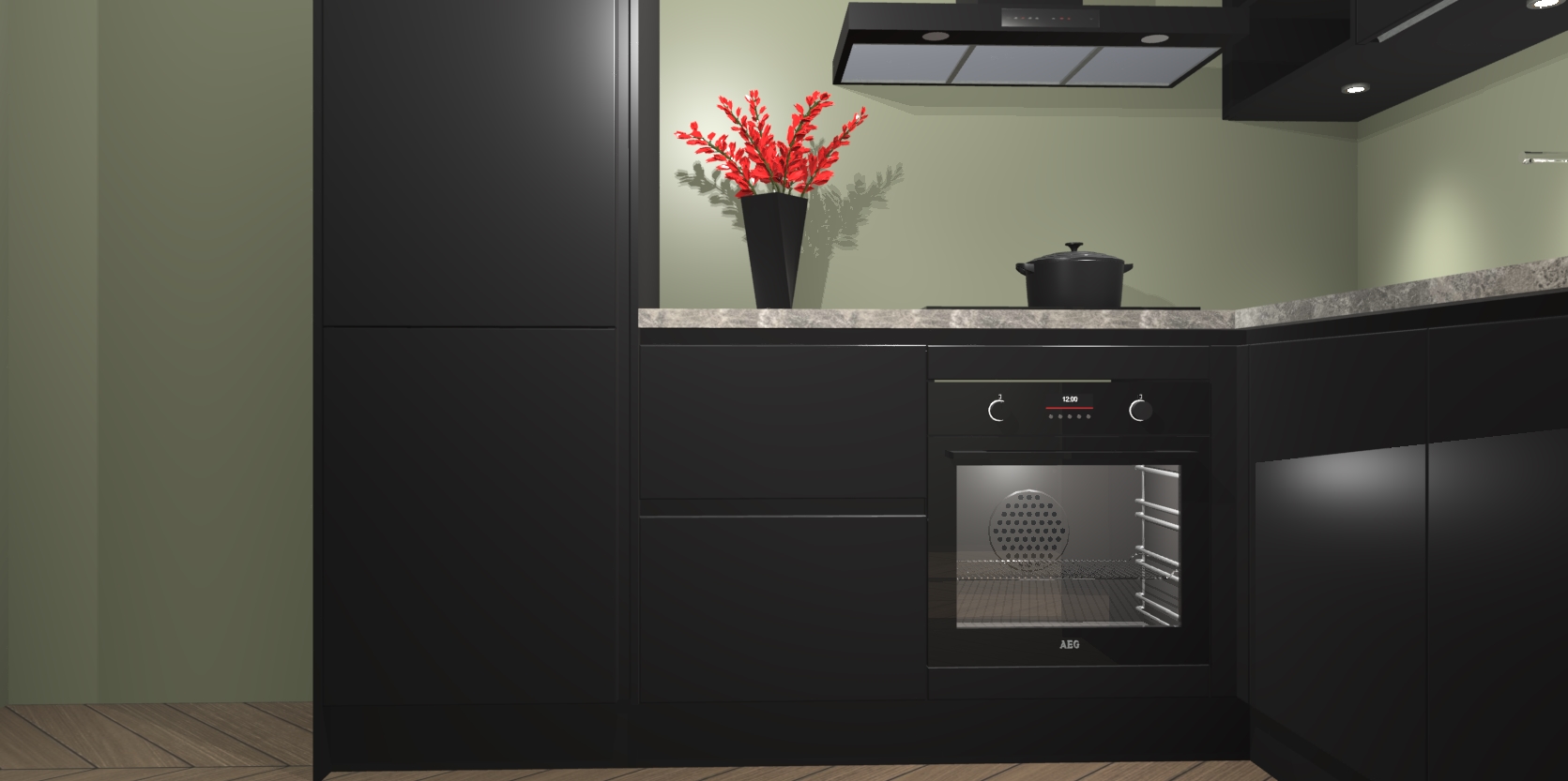 Wauw, dit is de greeploze zwarte keuken Pilsen! U kunt gerust zeggen dat u elegantie combineert met functionaliteit met deze keuken. Met een modern en chique ontwerp is de keuken precies wat u nodig heeft om uw ruimte te verfraaien. De binnenzijde van de kasten is in dezelfde donkere kleur als de buitenzijde voor een uniforme look, compleet met softclose-kasten die stil sluiten.