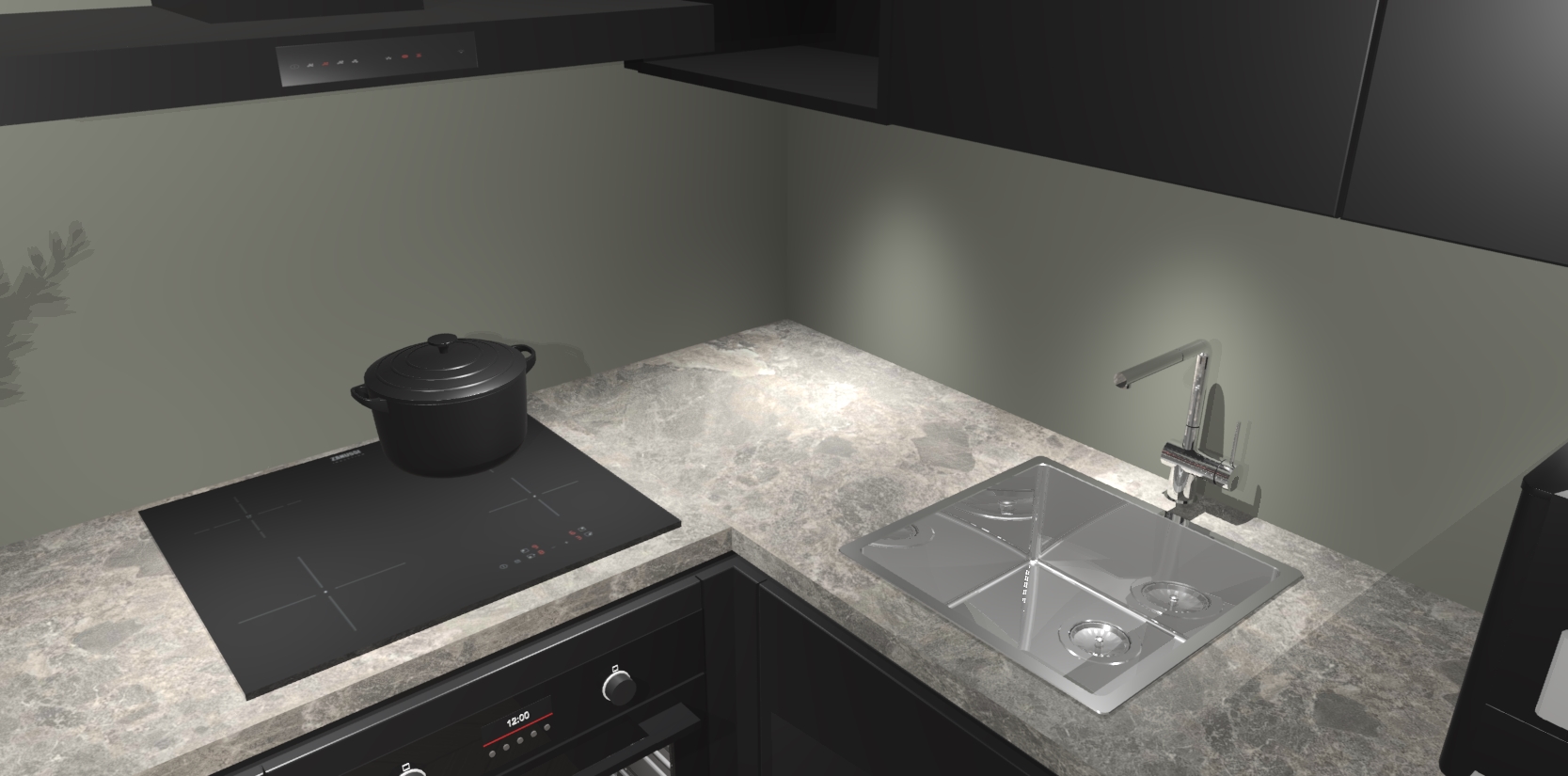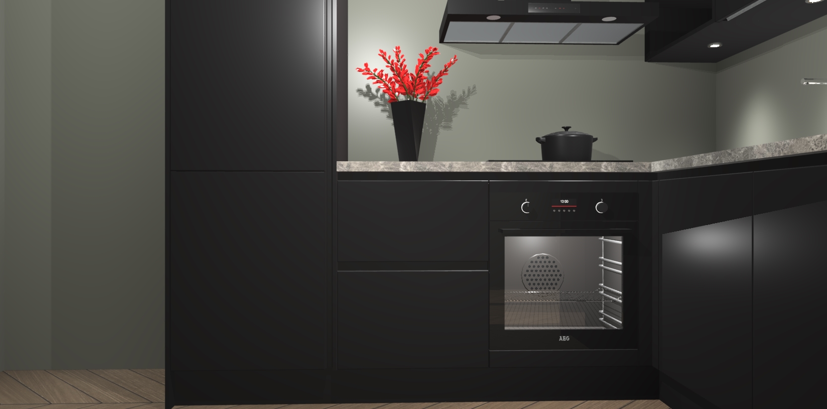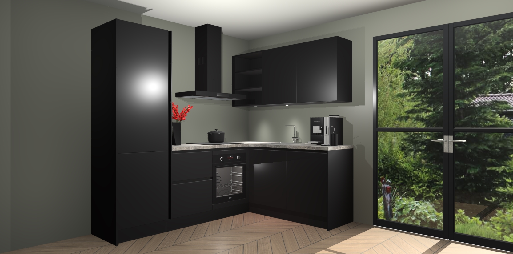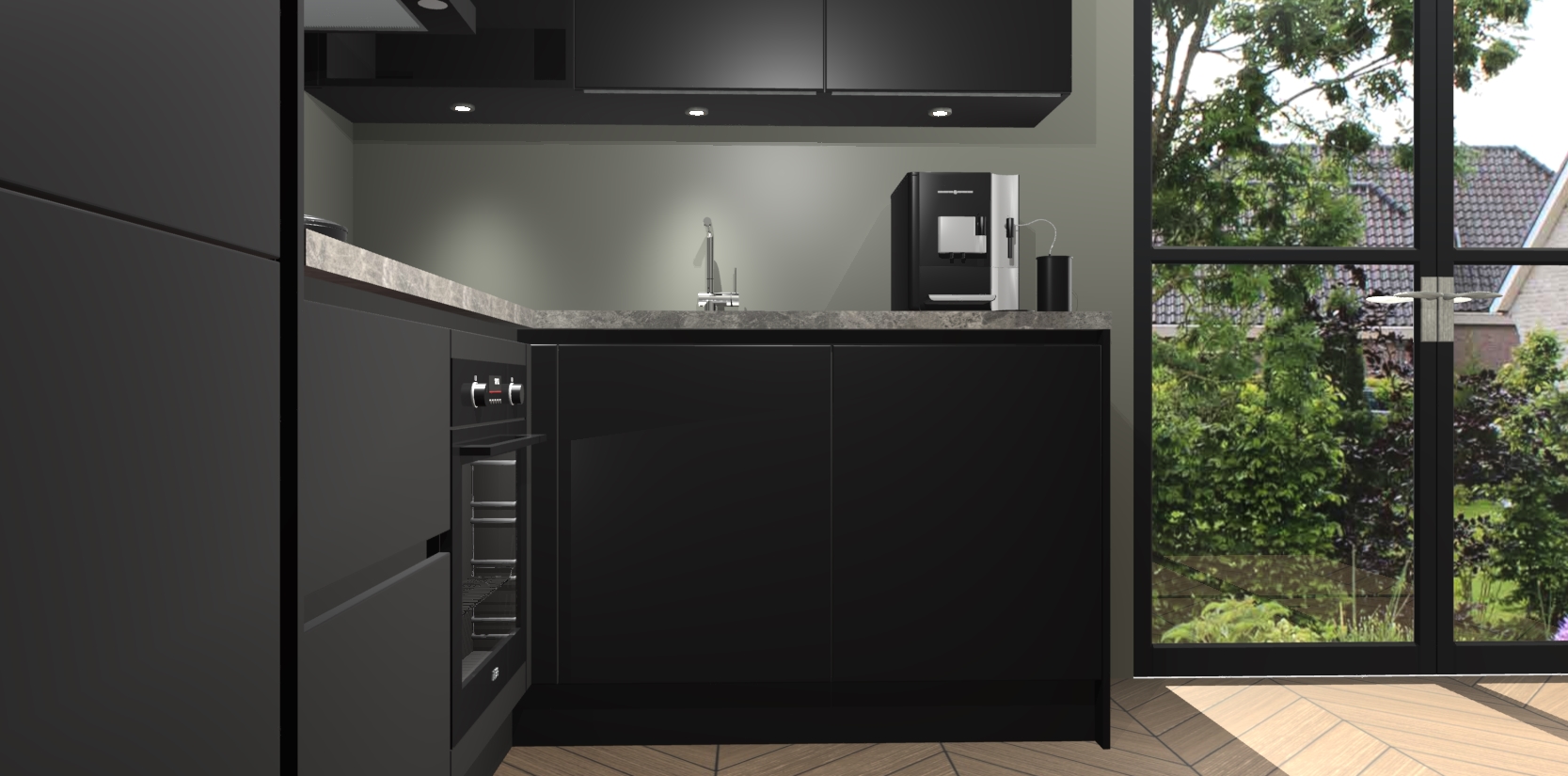 Wauw, dit is de Zwarte greeploze keuken Pilsen! U kunt gerust zeggen dat u elegantie combineert met functionaliteit met deze keuken. Met een modern en chique ontwerp is de keuken precies wat u nodig heeft om uw ruimte te verfraaien. De binnenzijde van de kasten is in dezelfde donkere kleur als de buitenzijde voor een uniforme look, compleet met softclose-kasten die stil sluiten.