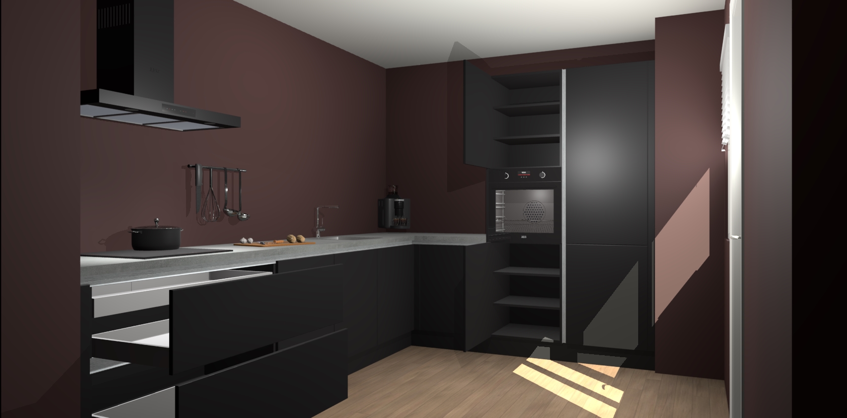 Welkom bij de Zwarte greeploze keuken Portland. Deze prachtige keuken zal de komende jaren het middelpunt van de belangstelling in uw huis zijn. Uitgerust met vijf inbouwapparaten komt u nooit kookgereedschap tekort. Bovendien geeft de warme houtlook elke ruimte een uitnodigende en tijdloze uitstraling.