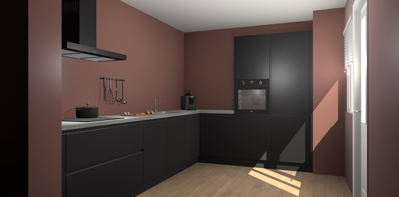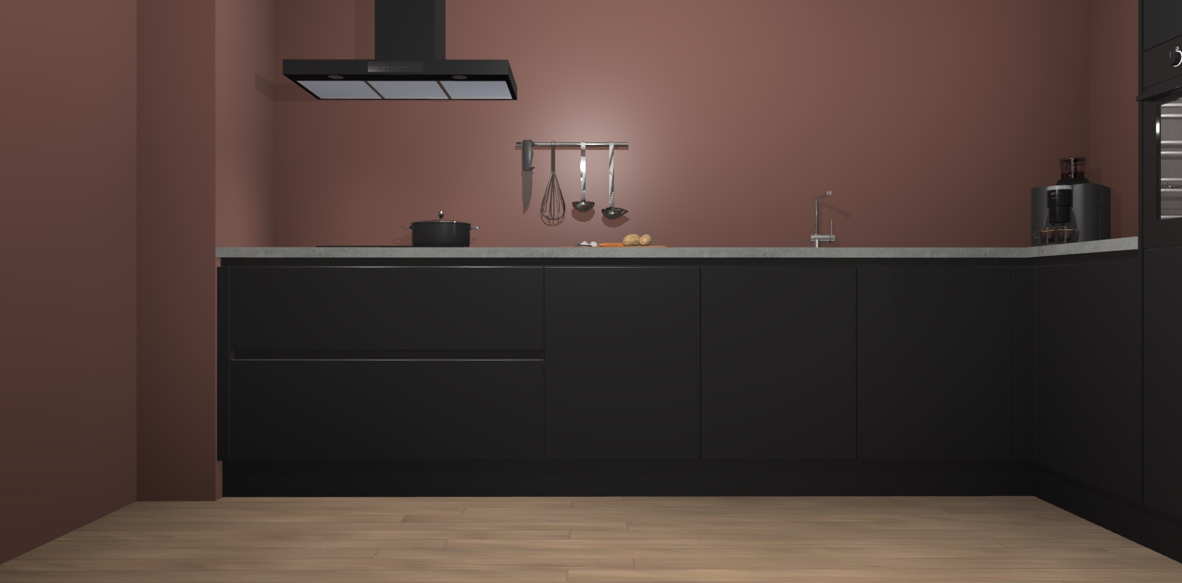 Welkom bij de Zwarte greeploze keuken Portland. Deze prachtige keuken zal de komende jaren het middelpunt van de belangstelling in uw huis zijn. Uitgerust met vijf inbouwapparaten komt u nooit kookgereedschap tekort. Bovendien geeft de warme houtlook elke ruimte een uitnodigende en tijdloze uitstraling.