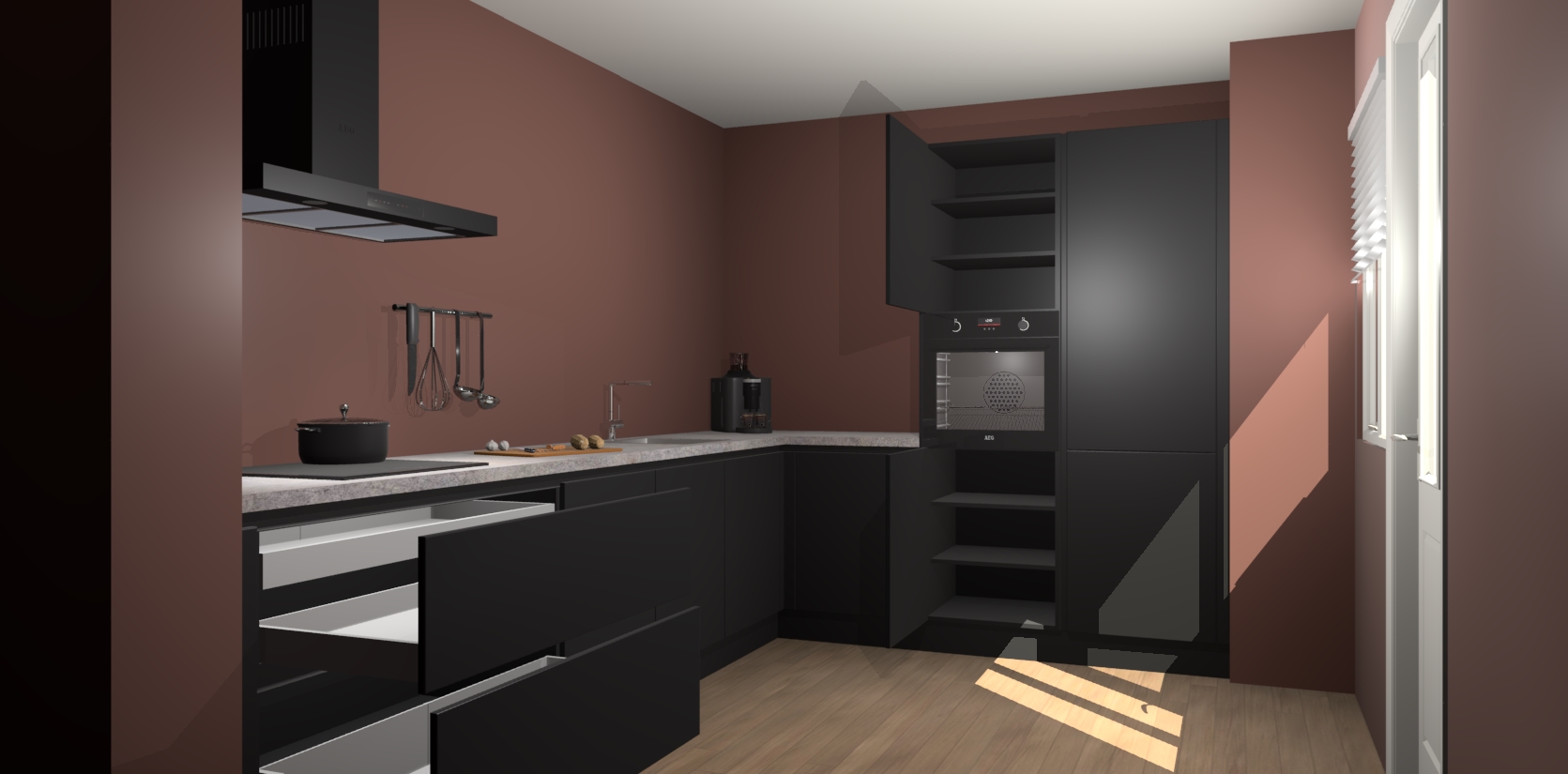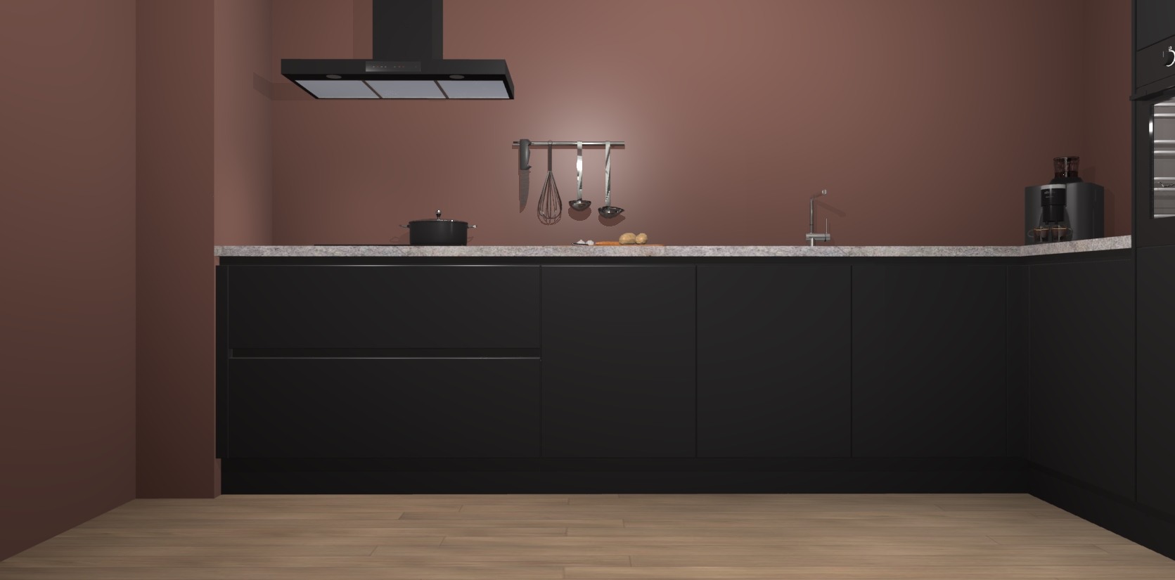 Welkom bij de Zwarte greeploze keuken Portland. Deze prachtige keuken zal de komende jaren het middelpunt van de belangstelling in uw huis zijn. Uitgerust met vijf inbouwapparaten komt u nooit kookgereedschap tekort. Bovendien geeft de warme houtlook elke ruimte een uitnodigende en tijdloze uitstraling.