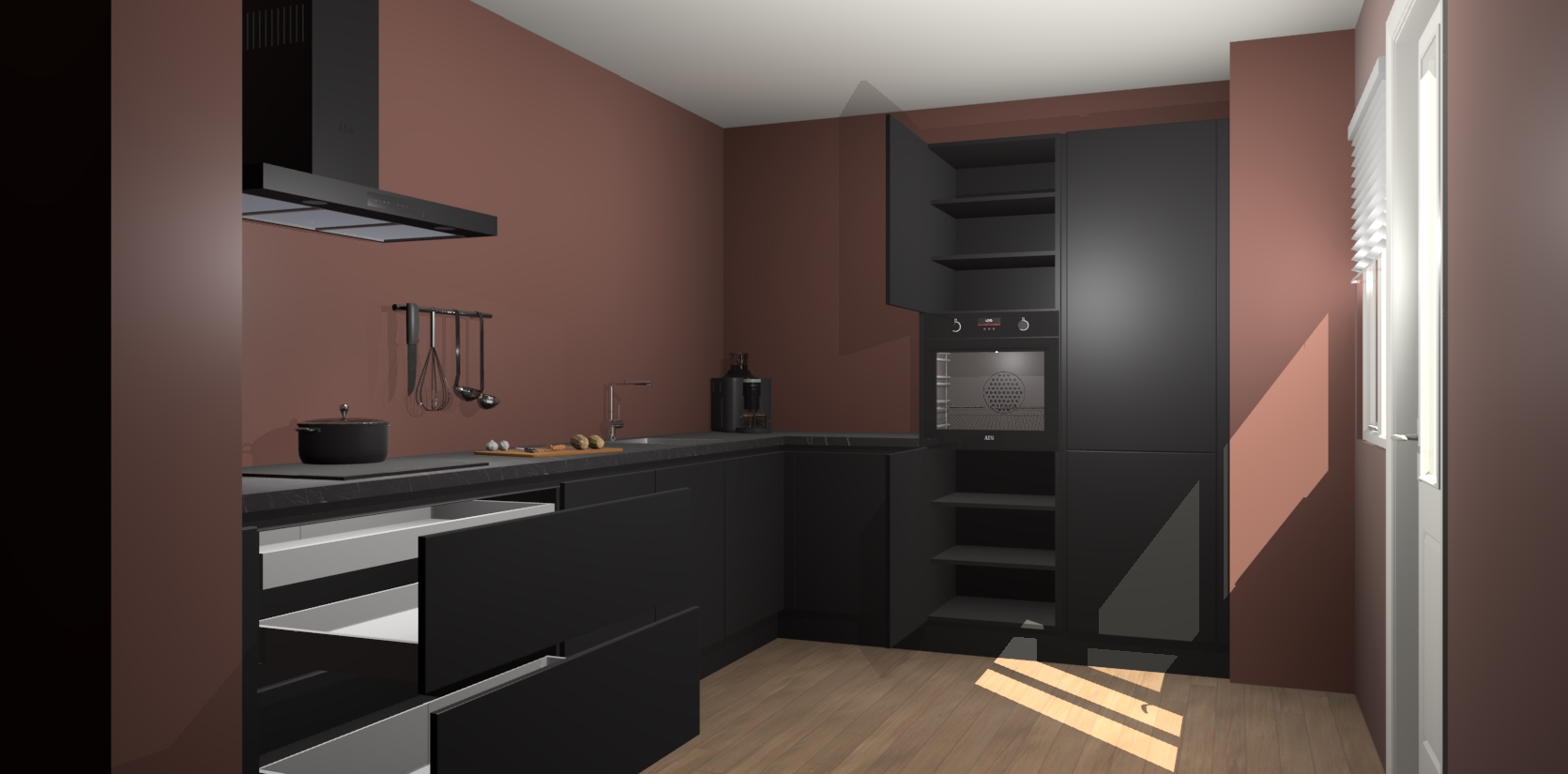 Welkom bij de Zwarte greeploze keuken Portland. Deze prachtige keuken zal de komende jaren het middelpunt van de belangstelling in uw huis zijn. Uitgerust met vijf inbouwapparaten komt u nooit kookgereedschap tekort. Bovendien geeft de warme houtlook elke ruimte een uitnodigende en tijdloze uitstraling.