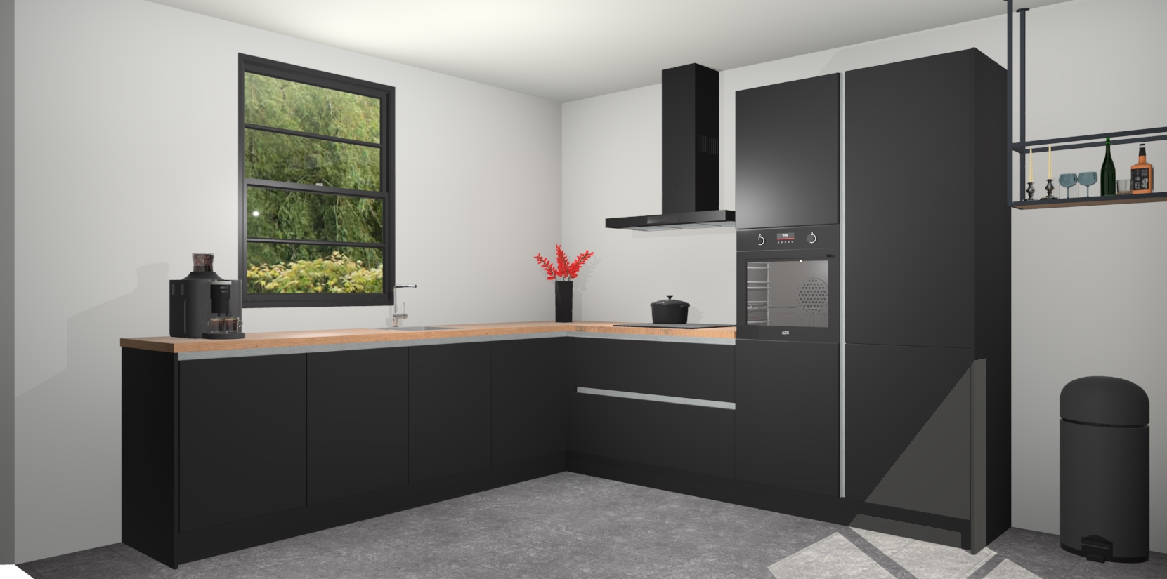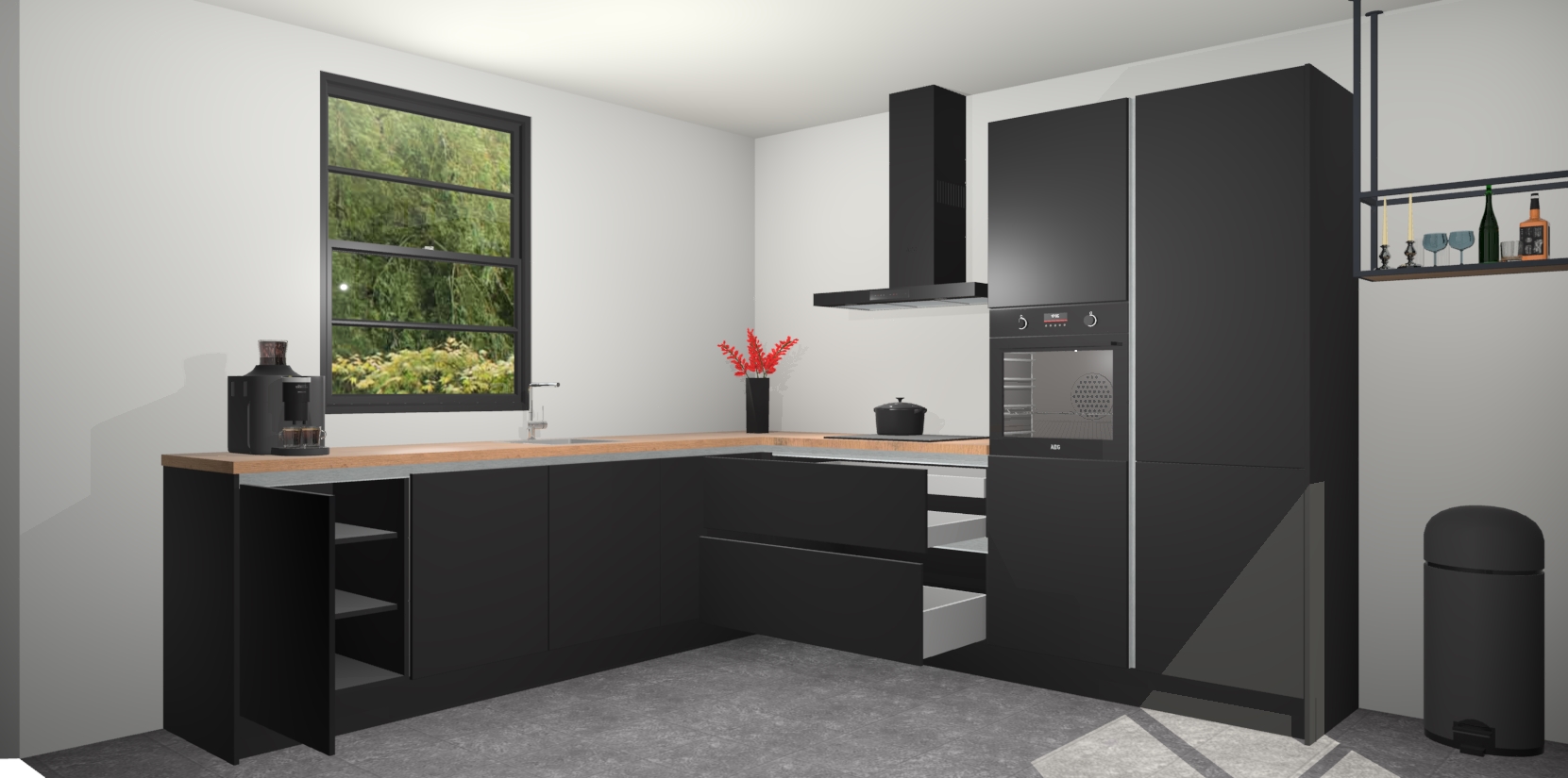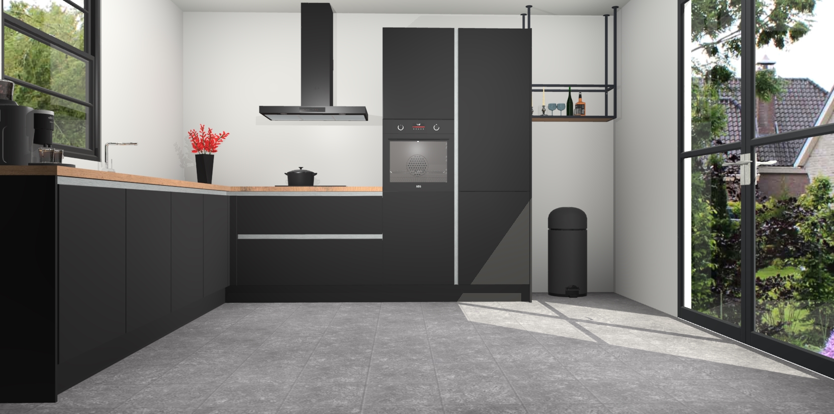 De Zwarte greeploze keuken Porto heeft 5 ingebouwde apparaten - een oven, inductiekookplaat, afzuigkap, vaatwasser en koelkast - waarmee u in een handomdraai heerlijke gerechten bereidt. Soft-close deuren zorgen voor nog meer functionaliteit en gemak. En dit alles voor een onverslaanbaar vaste prijs. En als u nu bestelt, duurt de levering maar 7 weken! Wat nog ongelooflijker is, is dat onze kasten voor gemonteerd worden geleverd.