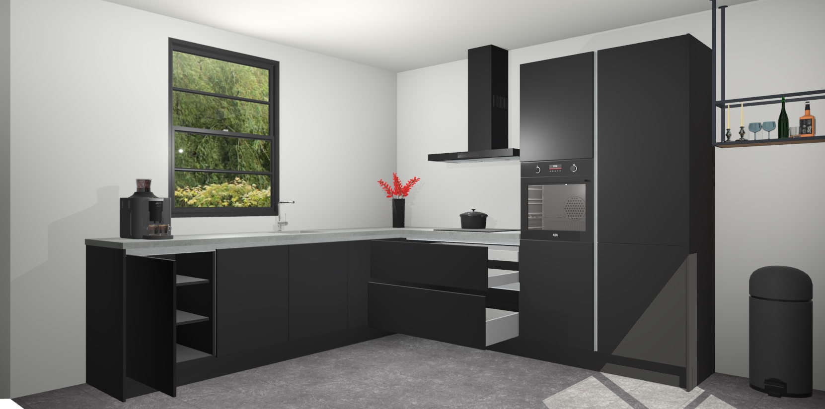 Nederlandse keukens worden niet comfortabeler dan de Zwarte greeploze keuken Porto! Deze prachtige en unieke keuken straalt sfeer uit en biedt tegelijkertijd praktische opbergoplossingen. Of u nu een meester-kok bent of een culinaire amateur, dit is de ideale keuze voor u! Deze keuken is ideaal voor grote gezinnen, huizen met veel gasten - of iedereen die graag thuis is - en heeft genoeg functies om uw gezin te voeden.