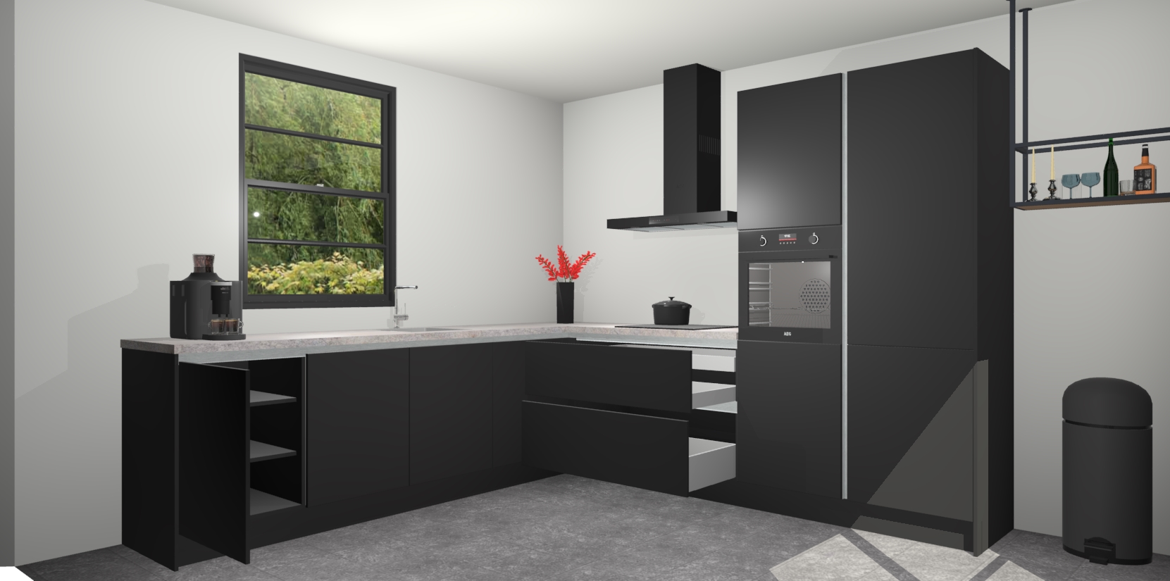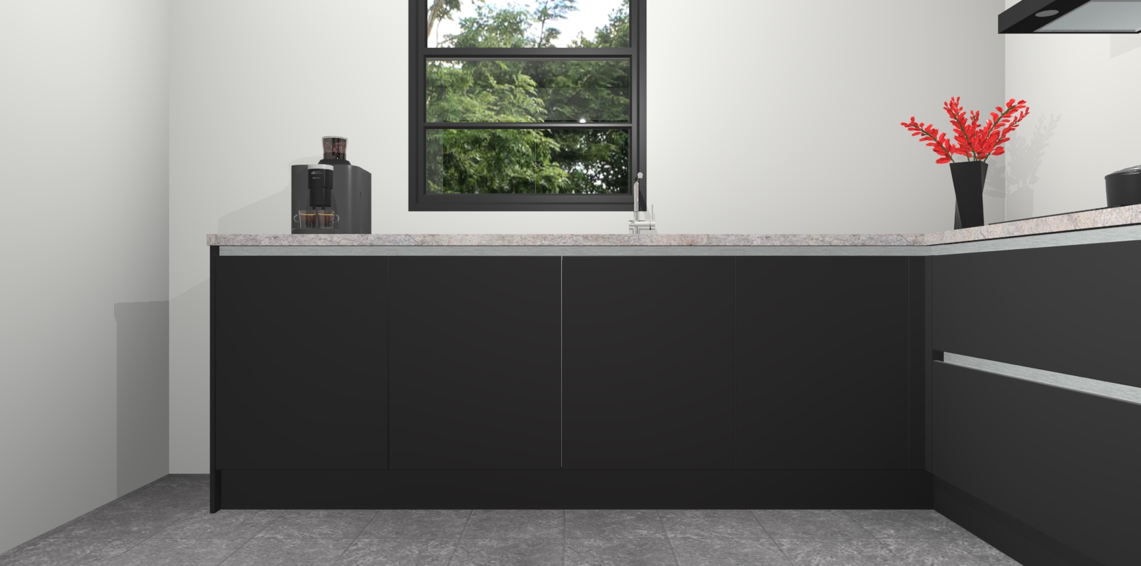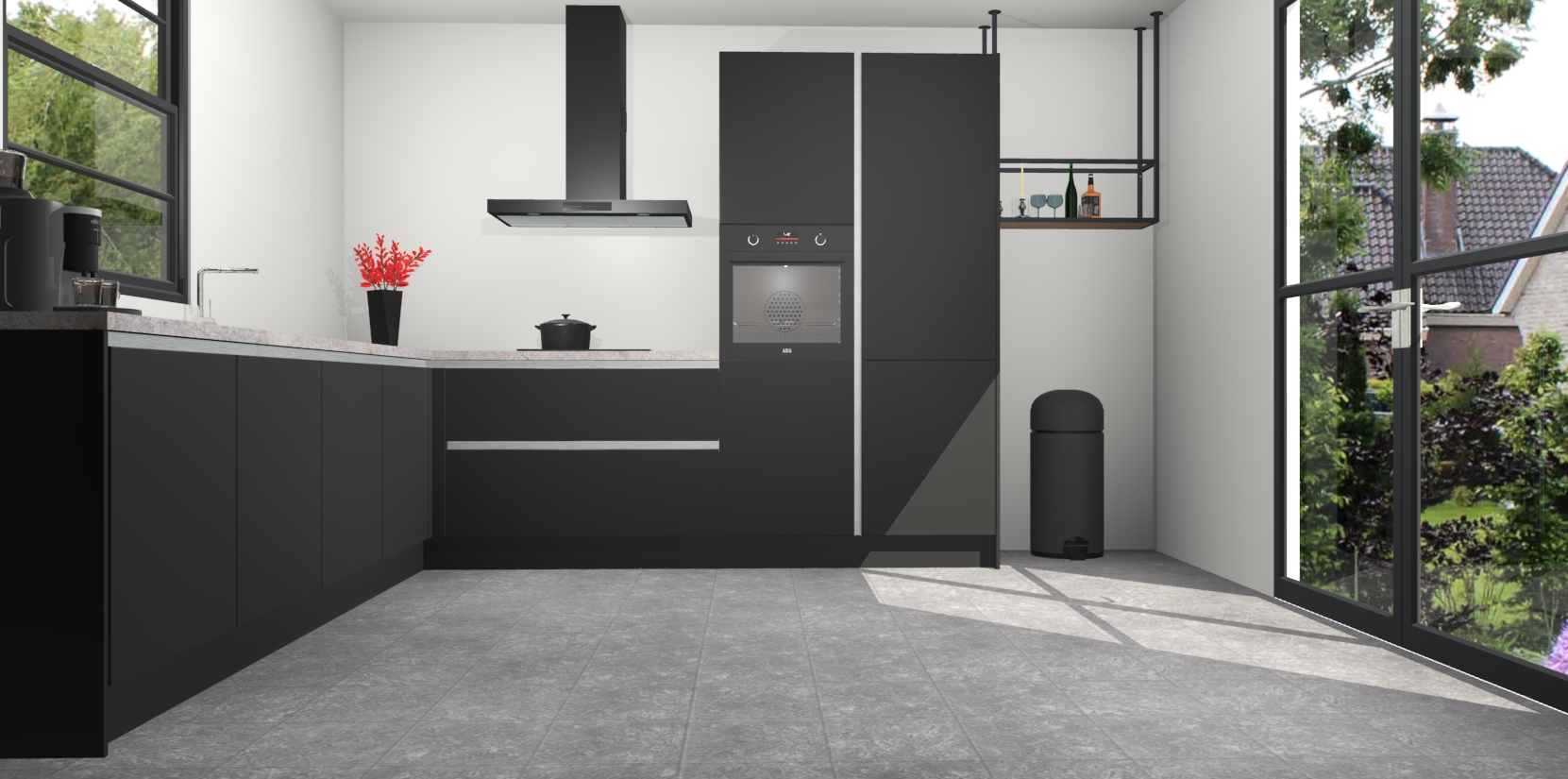 De Zwarte greeploze keuken Porto heeft 5 ingebouwde apparaten - een oven, inductiekookplaat, afzuigkap, vaatwasser en koelkast - waarmee u in een handomdraai heerlijke gerechten bereidt. Soft-close deuren zorgen voor nog meer functionaliteit en gemak. En dit alles voor een onverslaanbaar vaste prijs. En als u nu bestelt, duurt de levering maar 7 weken! Wat nog ongelooflijker is, is dat onze kasten voor gemonteerd worden geleverd.