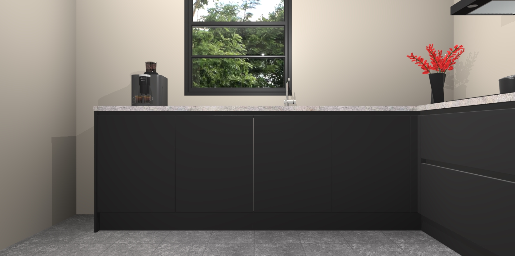 De Zwarte greeploze keuken Porto heeft 5 ingebouwde apparaten - een oven, inductiekookplaat, afzuigkap, vaatwasser en koelkast - waarmee u in een handomdraai heerlijke gerechten bereidt. Soft-close deuren zorgen voor nog meer functionaliteit en gemak. En dit alles voor een onverslaanbaar vaste prijs. En als u nu bestelt, duurt de levering maar 7 weken! Wat nog ongelooflijker is, is dat onze kasten voor gemonteerd worden geleverd.