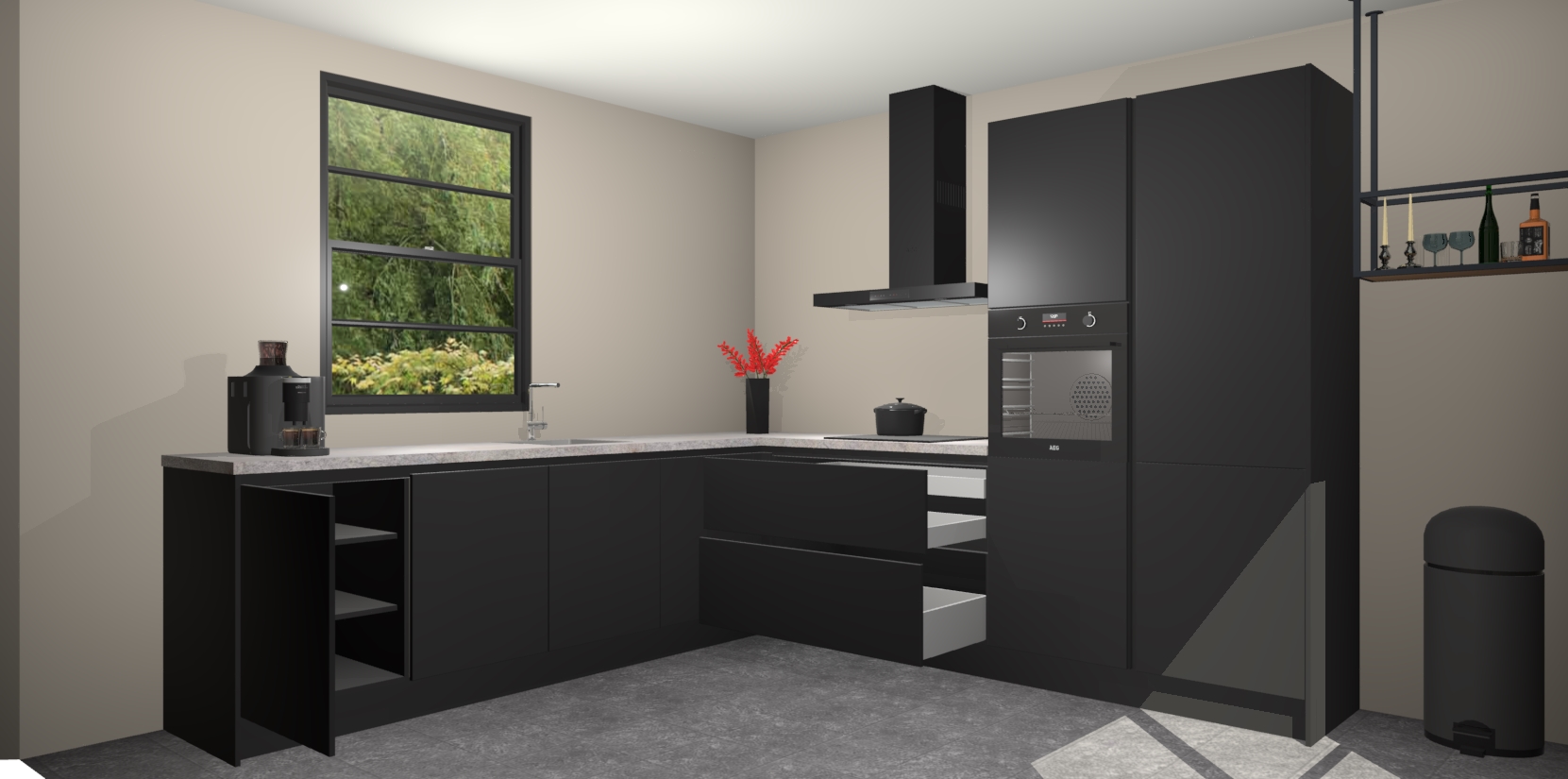 Nederlandse keukens worden niet comfortabeler dan de Zwarte greeploze keuken Porto! Deze prachtige en unieke keuken straalt sfeer uit en biedt tegelijkertijd praktische opbergoplossingen. Of u nu een meester-kok bent of een culinaire amateur, dit is de ideale keuze voor u! Deze keuken is ideaal voor grote gezinnen, huizen met veel gasten - of iedereen die graag thuis is - en heeft genoeg functies om uw gezin te voeden.
