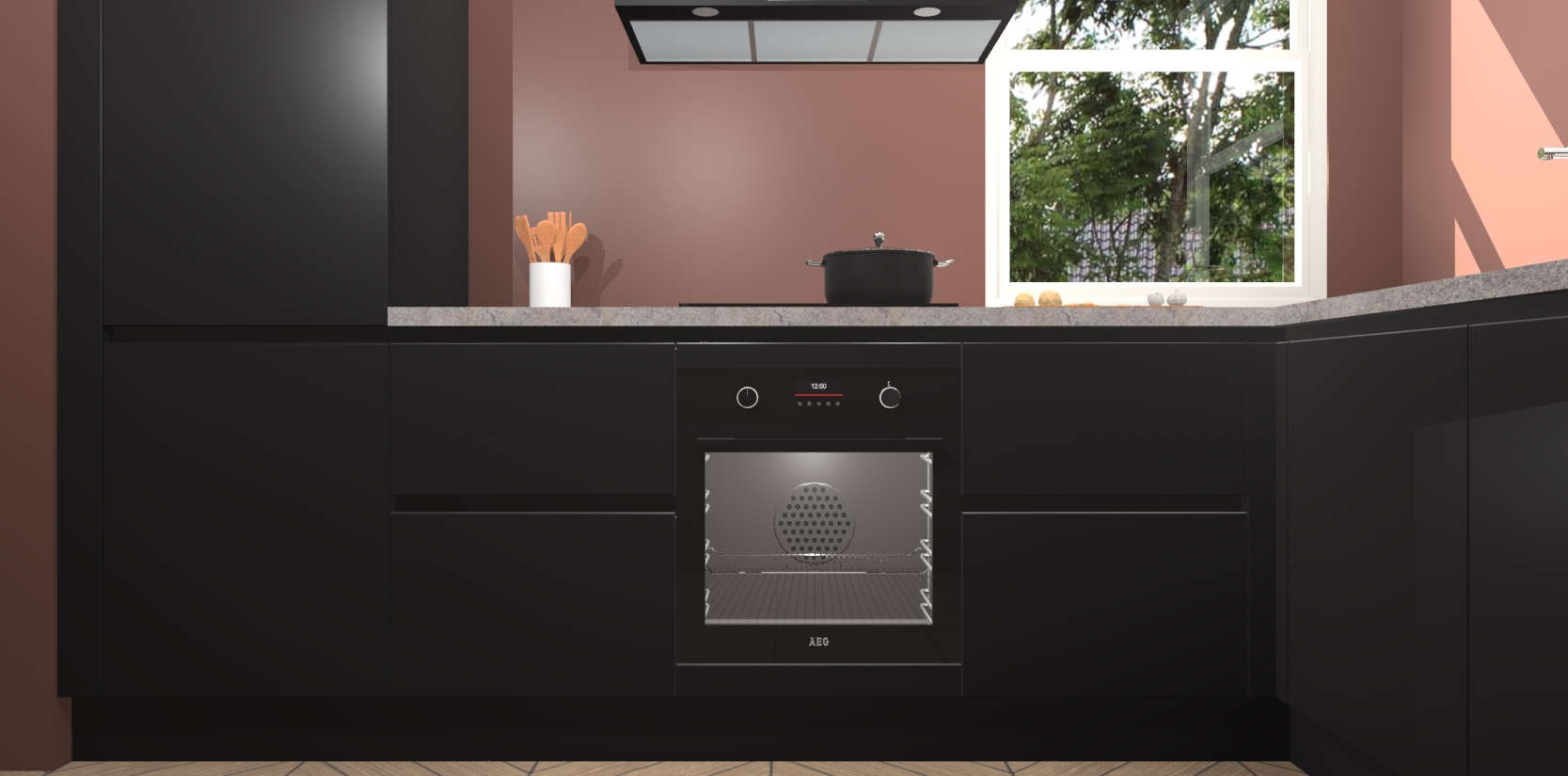 Wat maakt deze keuken zo bijzonder? Ten eerste geeft het houten werkblad uw ruimte een onmiskenbaar klassieke uitstraling. De natuurlijke afwerking roept warmte en elegantie op die nooit uit de mode zullen raken. Bovendien is het gemakkelijk schoon te houden en te onderhouden, zodat je er jarenlang plezier van kunt hebben. Als u op zoek bent naar extra gemak in uw keuken, dan heeft u bij het plaatsen van een bestelling bij ons ook de optie om uw toestellen te upgraden naar AEG-modellen - zo haalt u moderne innovatie van topmerken in apparatentechnologie rechtstreeks in huis.