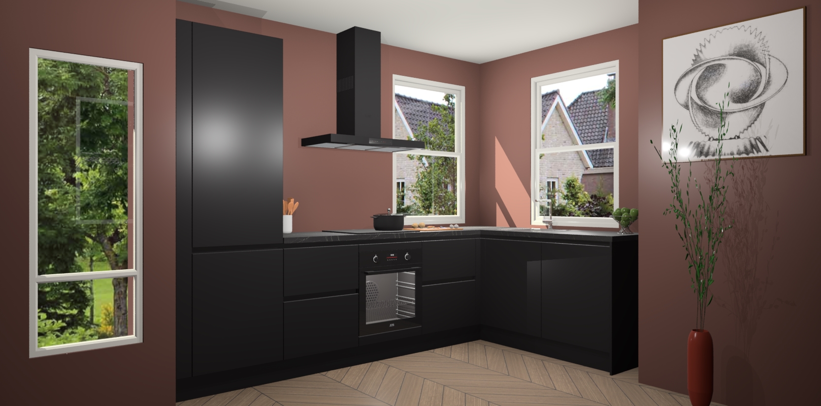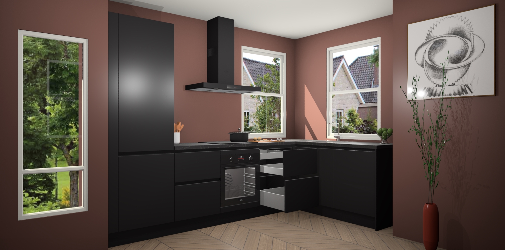 Welkom bij de Zwarte greeploze keuken Salzburg! Met een chique combinatie van een prachtig houten werkblad, klassiek design en altijd concurrerende prijzen is de Zwarte greeploze keuken Salzburg de keuken van uw dromen! Deze keuken is perfect voor alle huisformaten en decorstijlen en straalt stijl en verfijning uit. Van het tijdloze design tot de functionele functies, er is geen betere manier om de look van uw woon- of kookruimte te verbeteren.