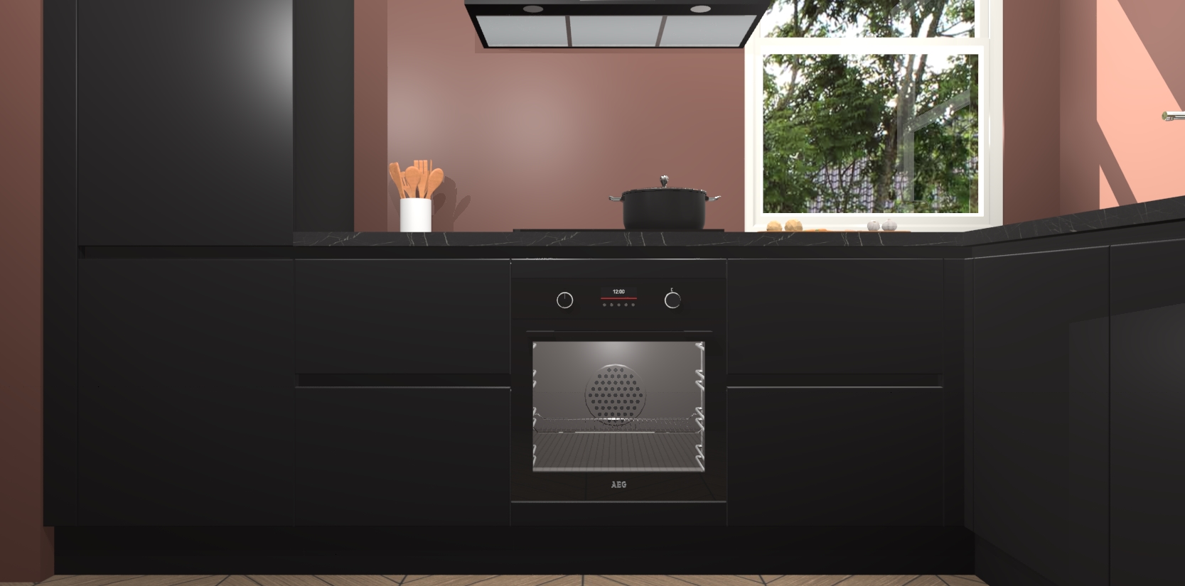 Wat maakt deze keuken zo bijzonder? Ten eerste geeft het houten werkblad uw ruimte een onmiskenbaar klassieke uitstraling. De natuurlijke afwerking roept warmte en elegantie op die nooit uit de mode zullen raken. Bovendien is het gemakkelijk schoon te houden en te onderhouden, zodat je er jarenlang plezier van kunt hebben. Als u op zoek bent naar extra gemak in uw keuken, dan heeft u bij het plaatsen van een bestelling bij ons ook de optie om uw toestellen te upgraden naar AEG-modellen - zo haalt u moderne innovatie van topmerken in apparatentechnologie rechtstreeks in huis.