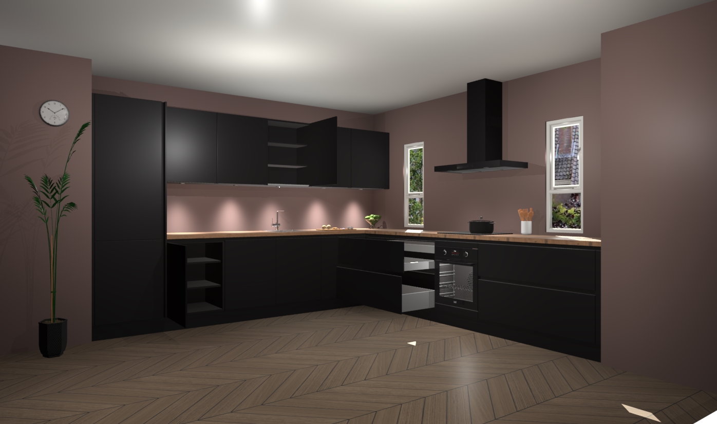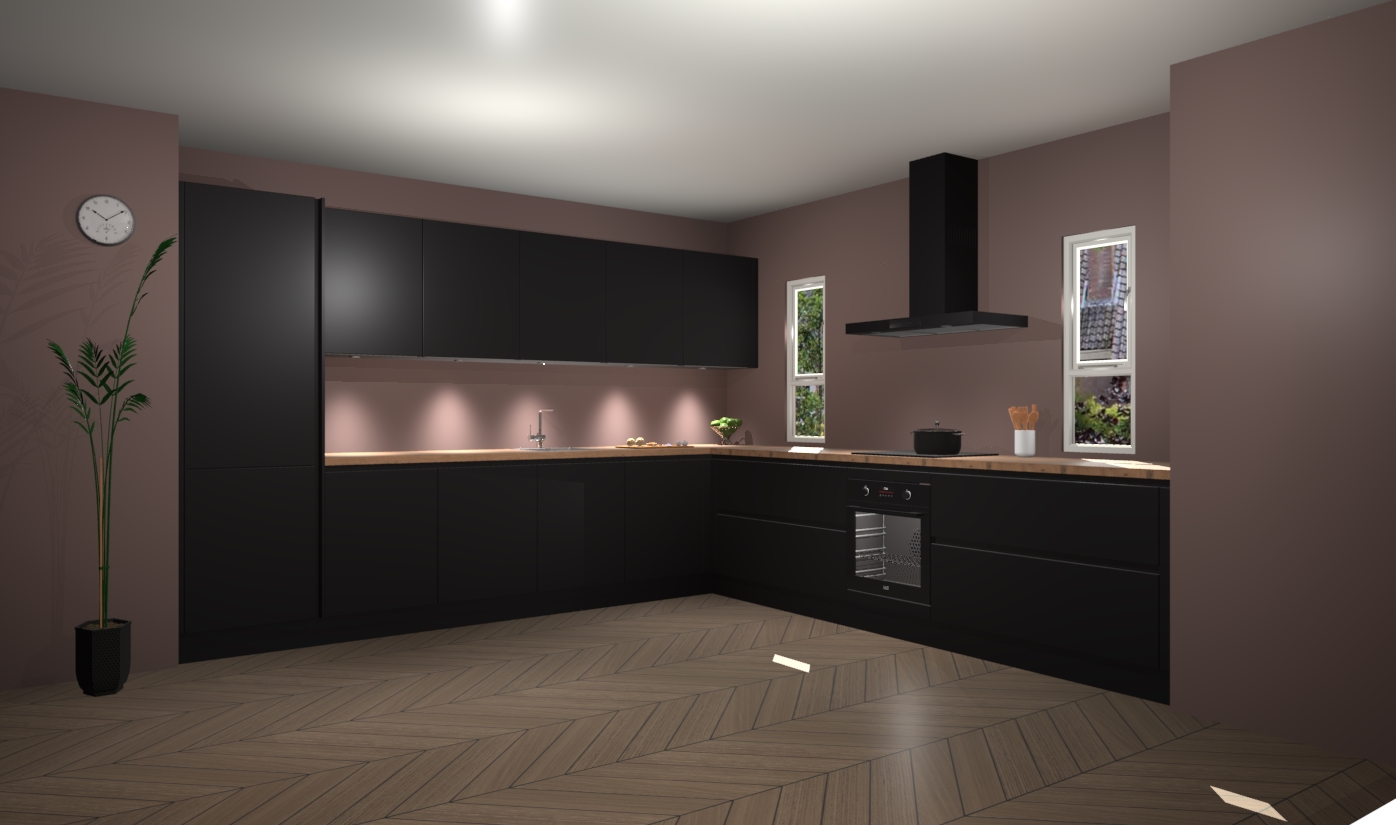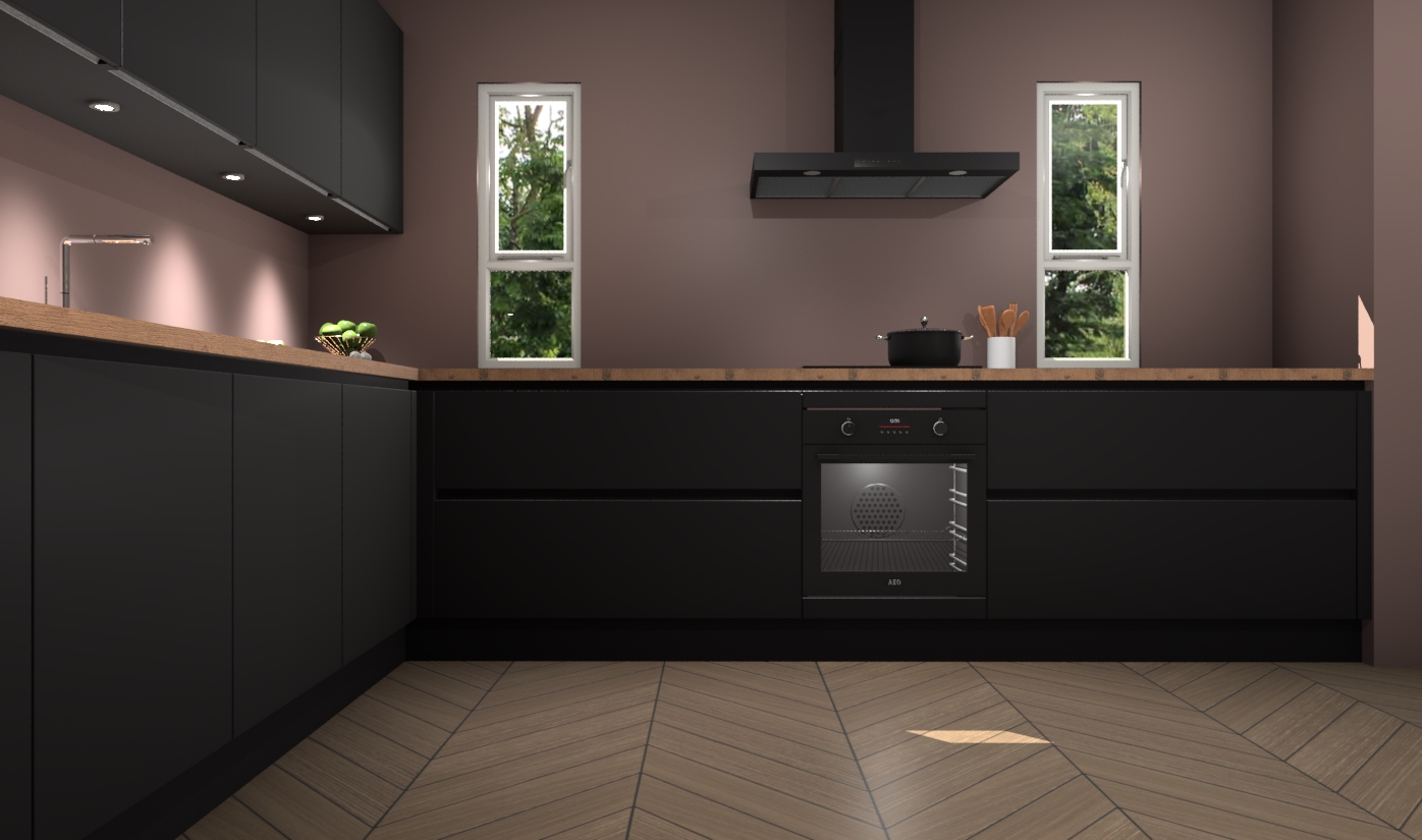 De zwarte greeploze keuken is een ideale hoekkeuken en heeft alle functies en apparatuur die u maar nodig kunt hebben. Bij de bestelling krijgt u een oven, inductiekookplaat, afzuigkap, vaatwasser en koelkast - deze kunnen desgewenst eenvoudig worden uitgebreid naar AEG na bestellen. Elke kast wordt ook voor gemonteerd geleverd met soft close deuren die jarenlang gebruik beloven. Stelt u zich voor dat u geen gedoe heeft met vervelende montage - vanaf het moment dat u uw bestelling plaats, duurt het slechts 7 weken voor het bij u thuis geleverd wordt.